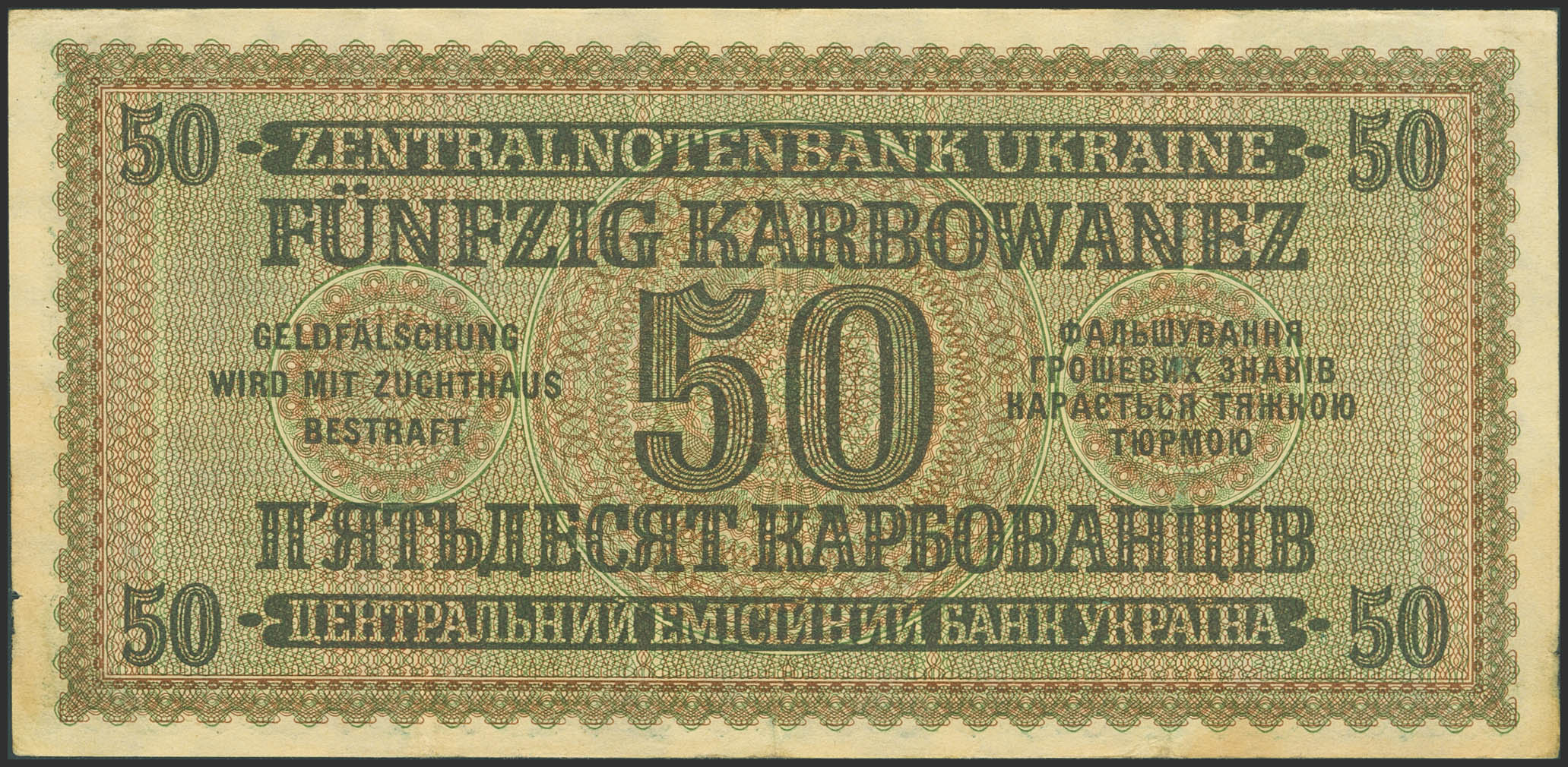 UKRAINE. 50 Karbowanez. March 10, 1942. Central Note Bank. (Pick: 54). Extremely Fine.