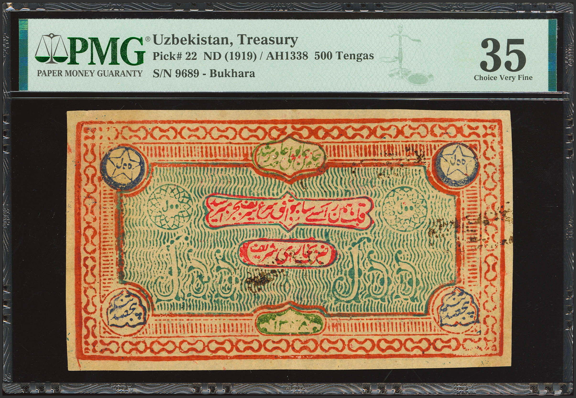 UZBEKISTAN. 500 Tengas. 1919. Treasury. Bukhara Emirate. (Pick: 22). PMG35.