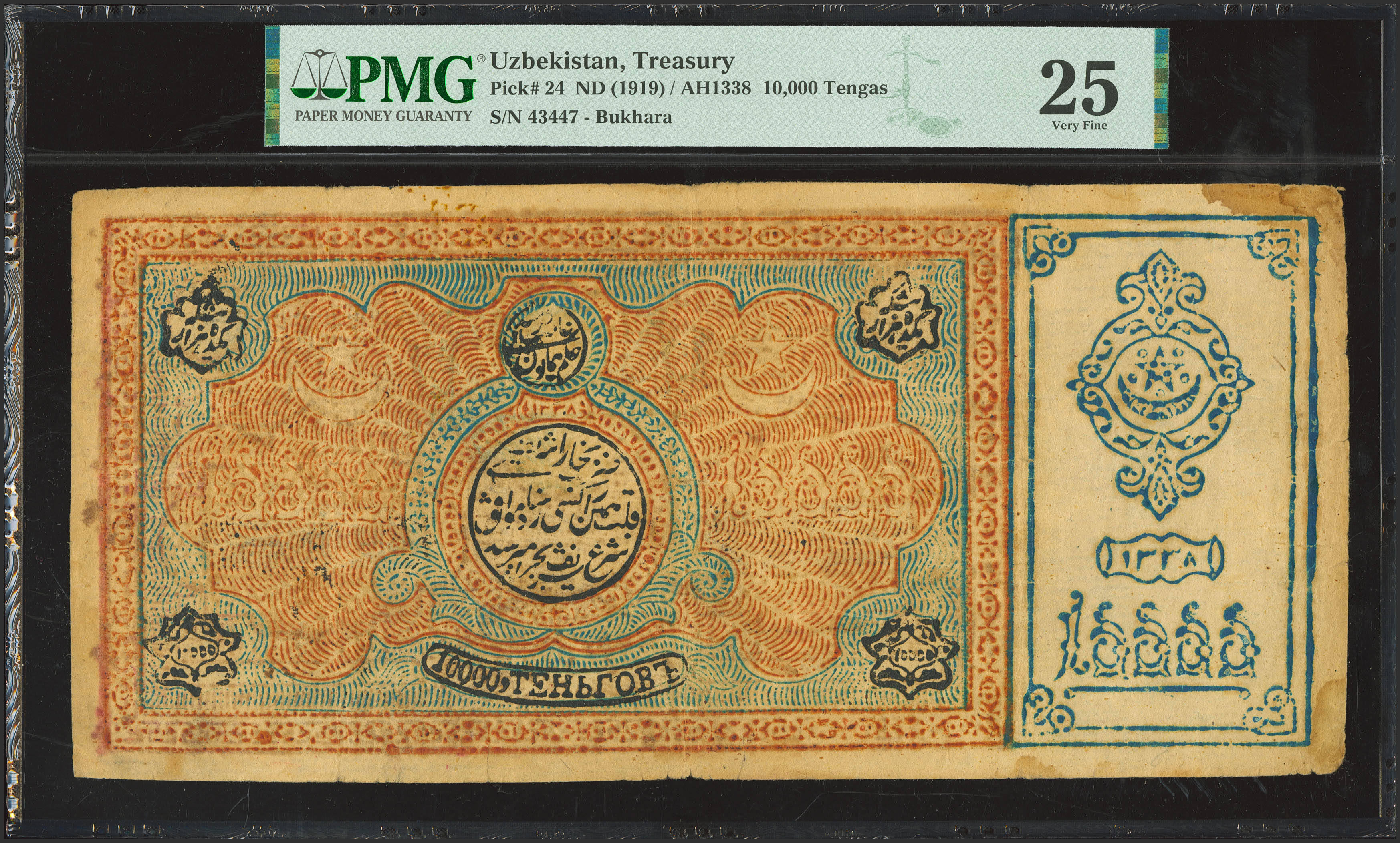 UZBEKISTAN. 10000 Tengas. 1919. Treasury. Bukhara Emirate. (Pick: 24). PMG25 (splits, stains).
