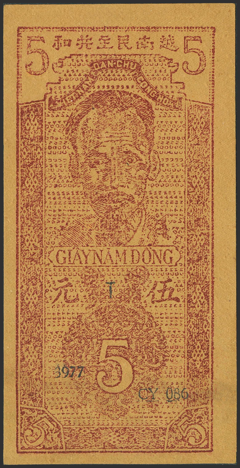 VIETNAM. 5 Dong. (1946ca). Democratic Republic of Vietnam. (Pick: 2a). About Uncirculated.