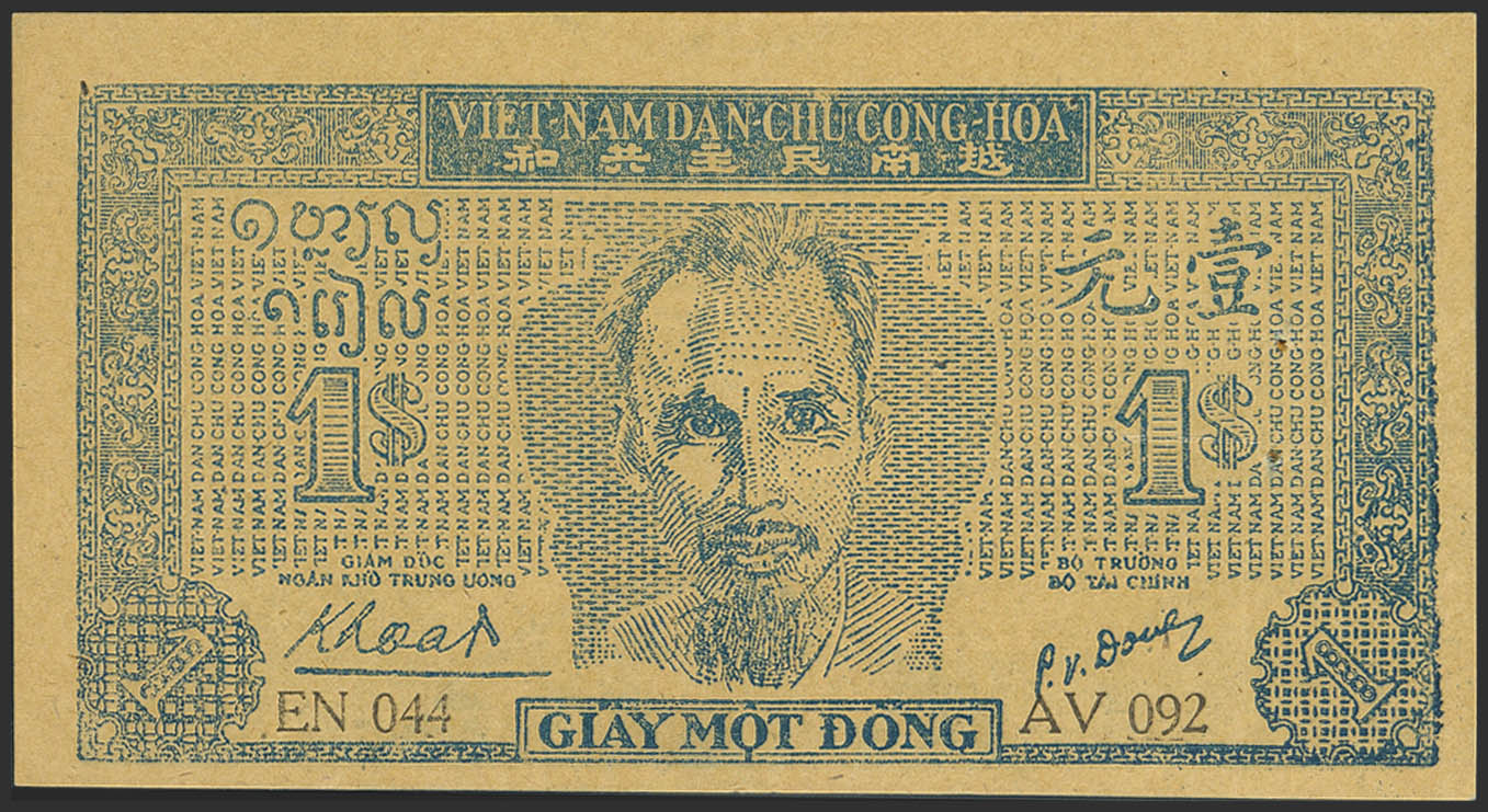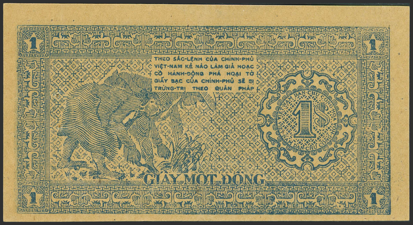 English VIETNAM. 1 Dong. (1947ca). Democratic Republic of Vietnam. (Pick: 9d). More than Extremely Fine, staple holes.