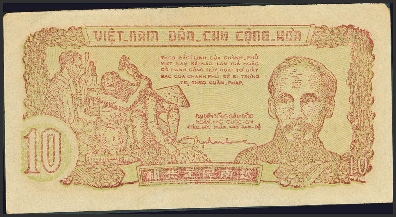 VIETNAM. 10 Dong. (1952ca). Democratic Republic of Vietnam. With watermark. (Pick: 37a). Uncirculated, rounded corners.