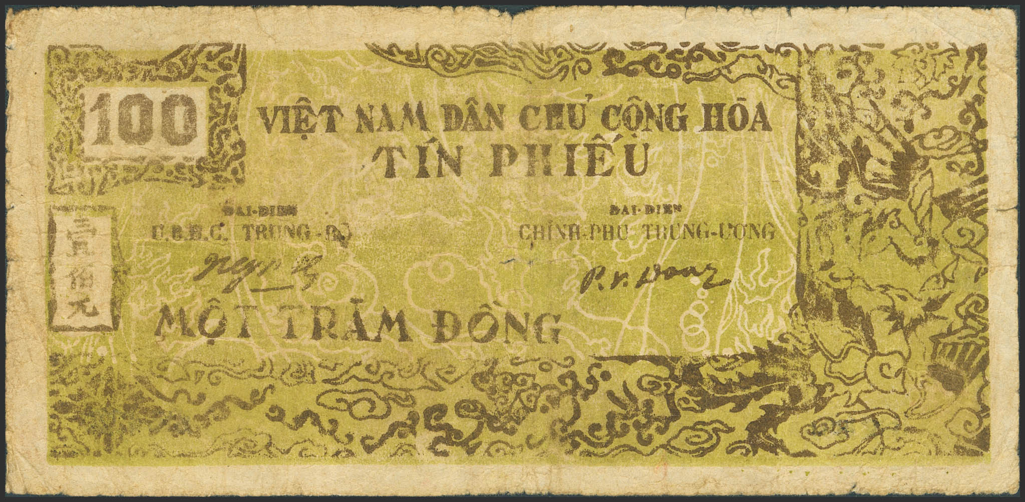 VIETNAM. 100 Dong. (1950ca). Democratic Republic of Vietnam. (Pick: 55a). Very good, tears.