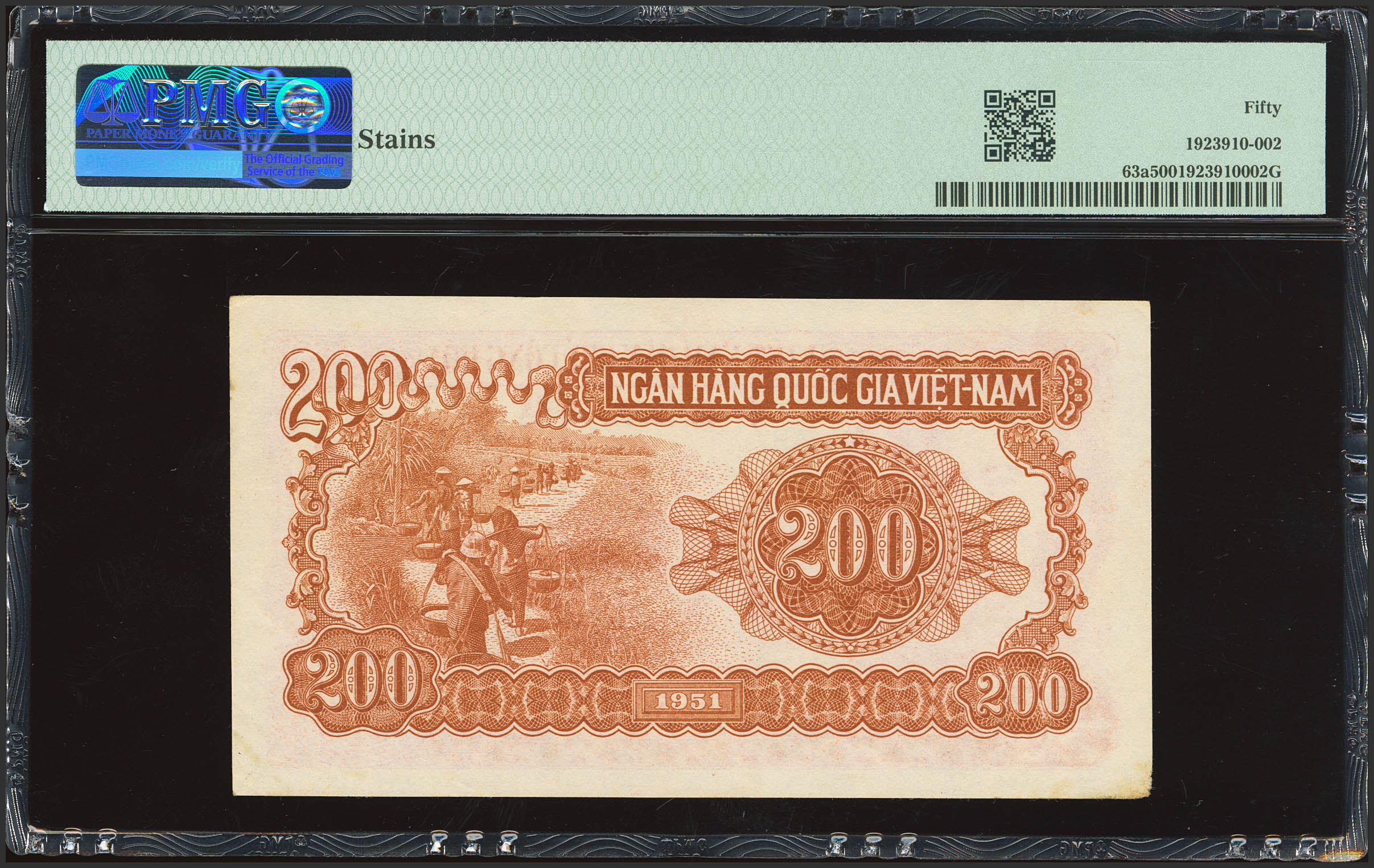 VIETNAM. 200 Dong. 1951. National Bank. (Pick: 63a). PMG50 (Stains).