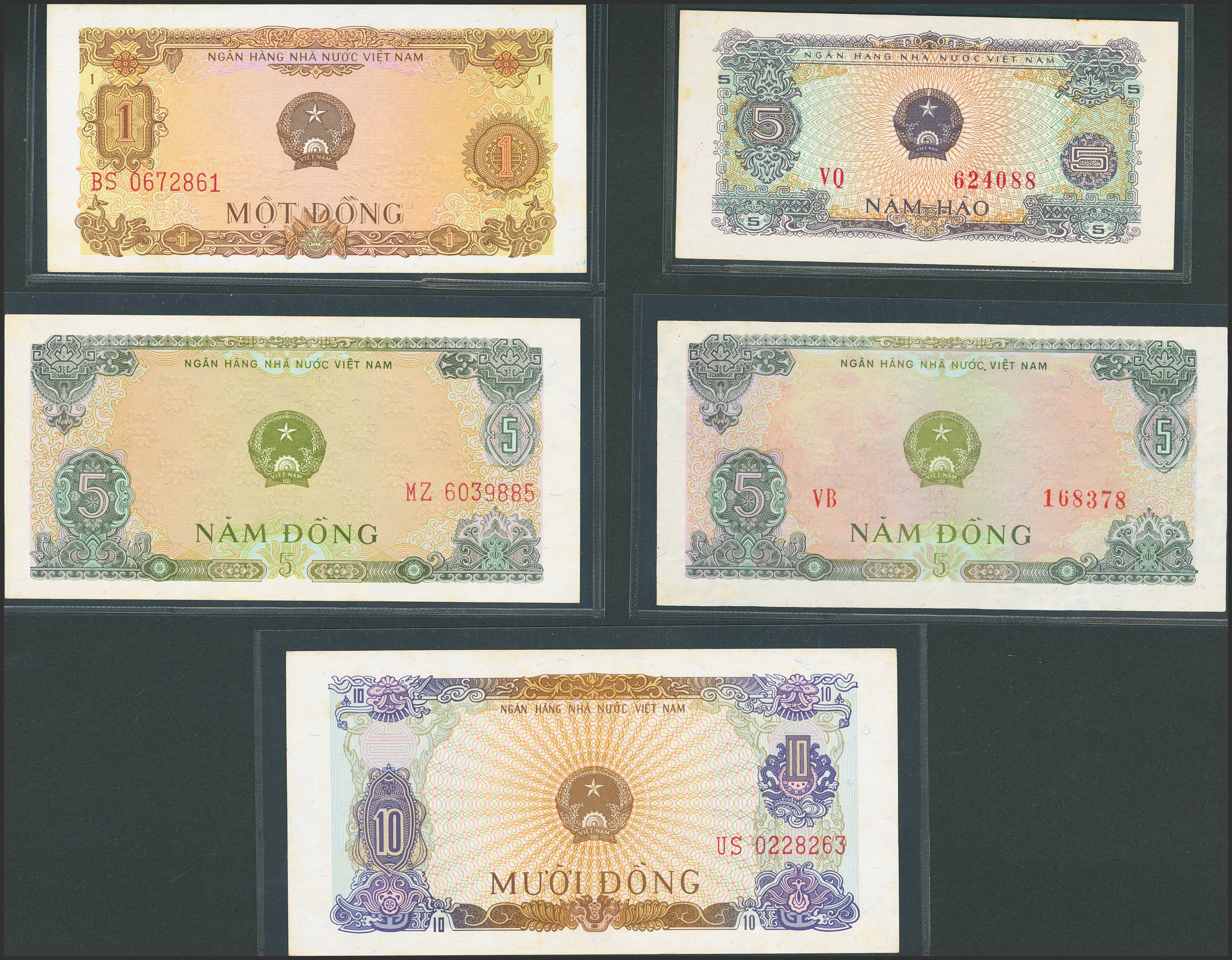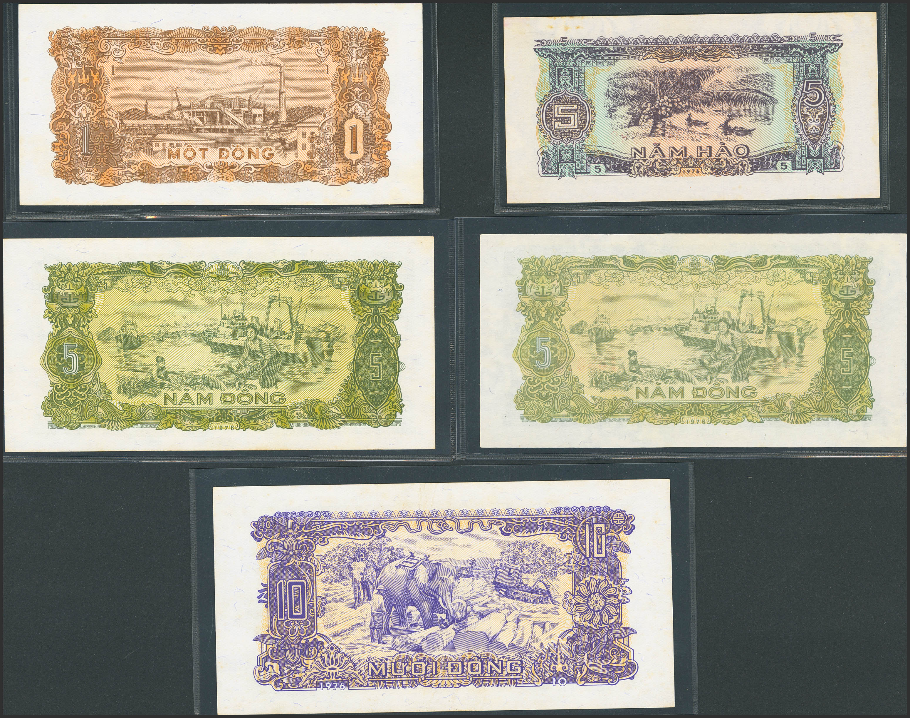 VIETNAM. Lot of 5 notes from 5 Hao-10 Dong. 1976. State Bank. (Pick: 79a, 80a, 81a, 81b, 82a). Less than Uncirculated (2) and Uncirculated (2), very slight stains on two of them.