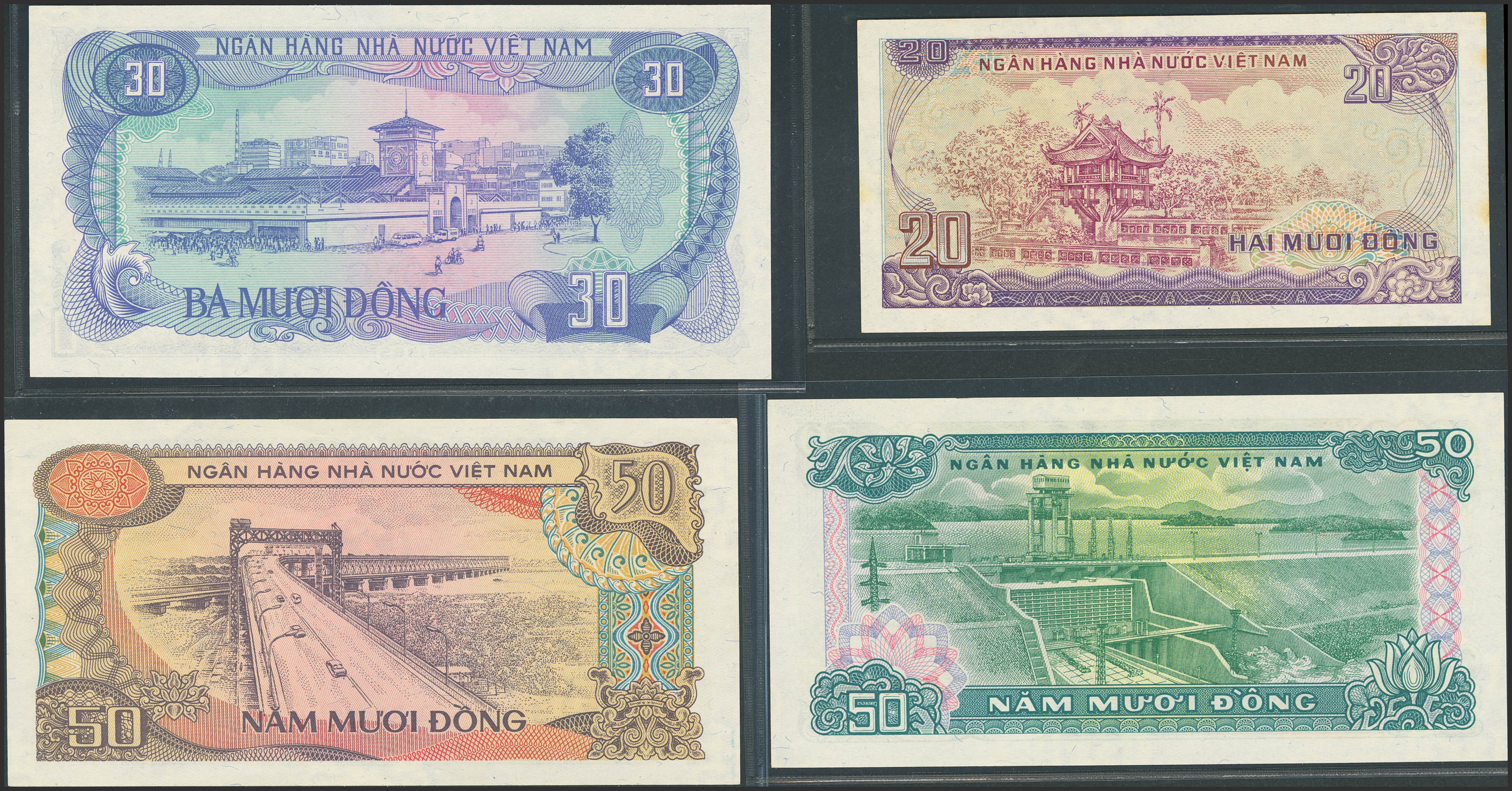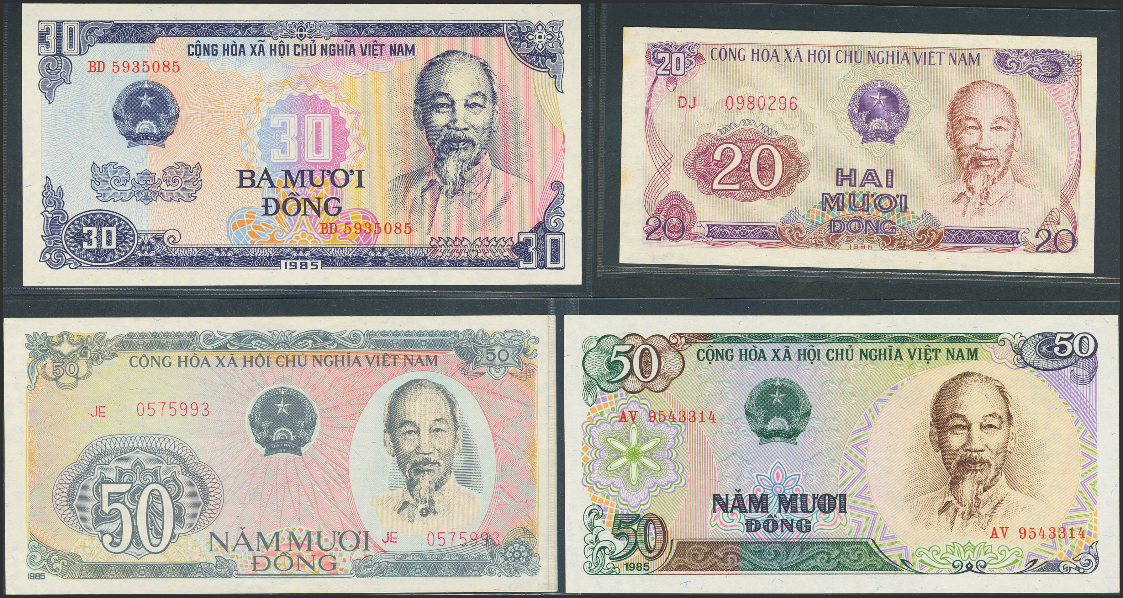 VIETNAM. Lot of 4 notes from 20-50 Dong. 1985. State Bank. (Pick: 94a, 95a, 96a, 97a). Uncirculated (3) and Less than uncirculated (1), 20 Dong note slight dirt on the left edge.