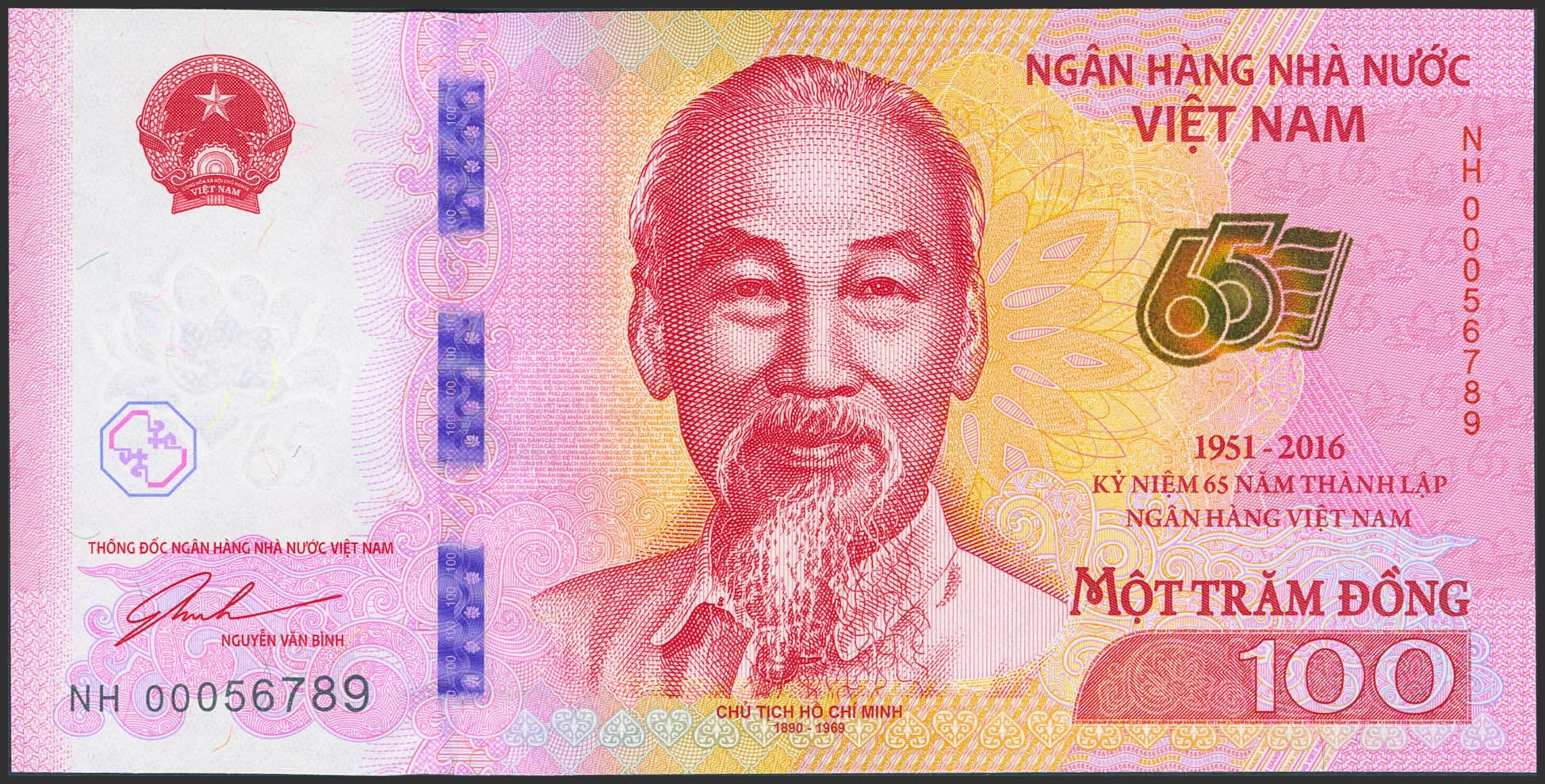 VIETNAM. 100 Dong. 2016. State Bank. 65Th Anniversary. (Pick: 125a). Uncirculated.