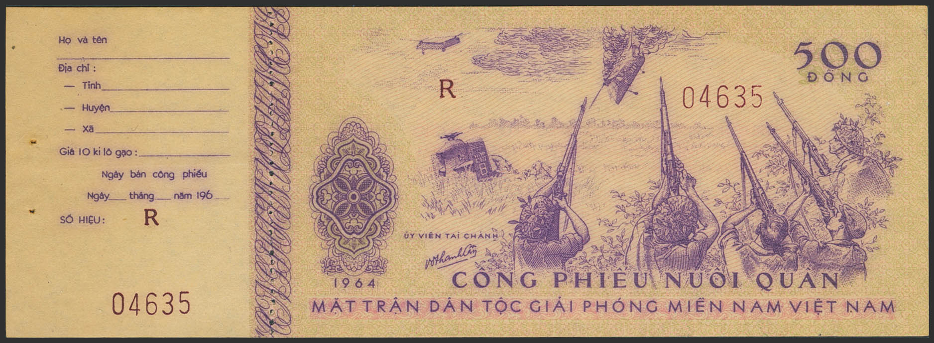English VIETNAM. 500 Dong. 1964. Military Ration Coupon. Viet Cong. (Pick: Unlisted). Uncirculated.