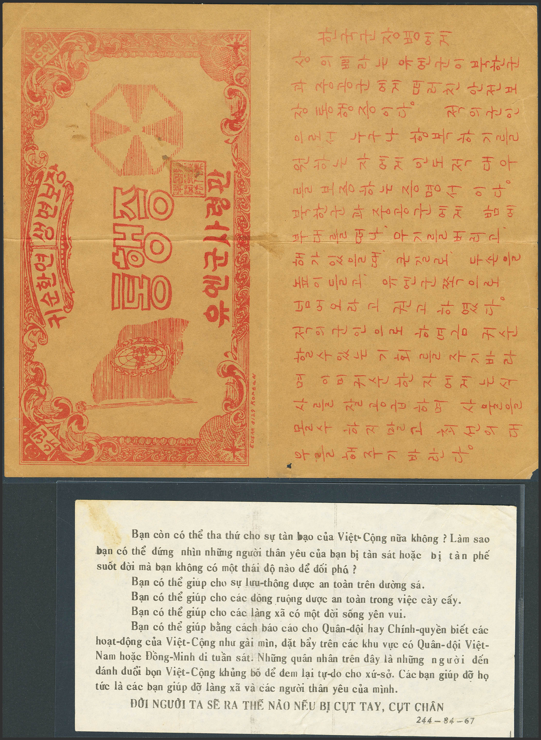 VIETNAM. Lot of 2 war propaganda leaflets. (1965ca). North Korea and Allies of South Vietnam. (Pick: Unlisted). Extremely Fine.