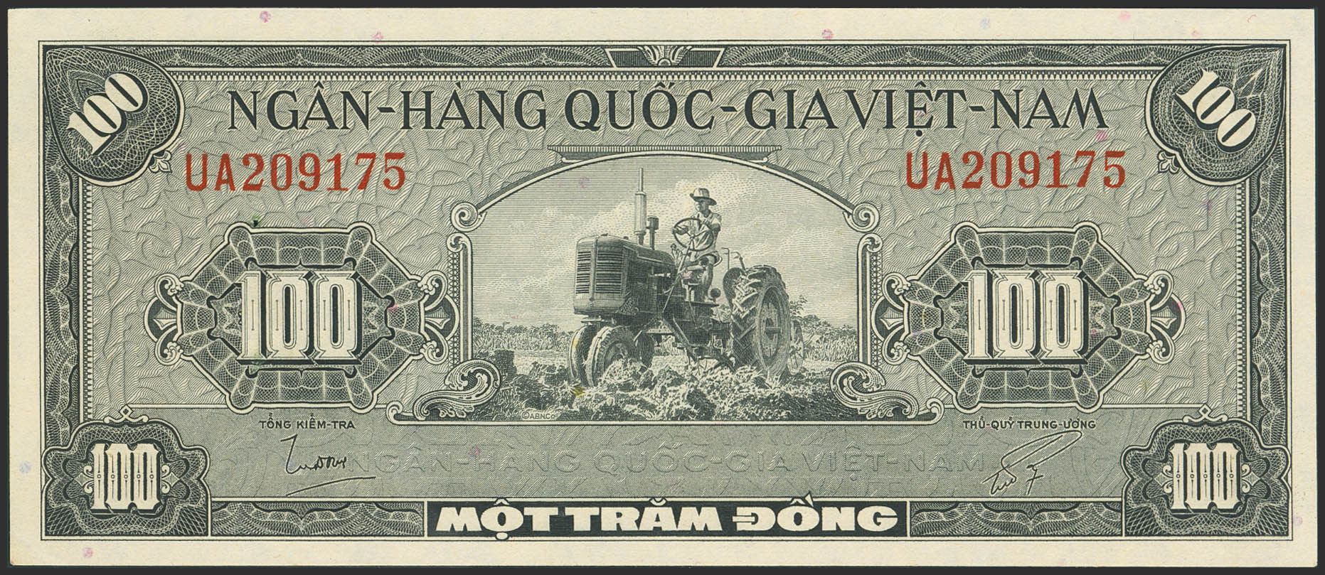 VIETNAM SOUTH. 100 Dong. (1955ca). National Bank. (Pick: 8a). Uncirculated, pinholes.