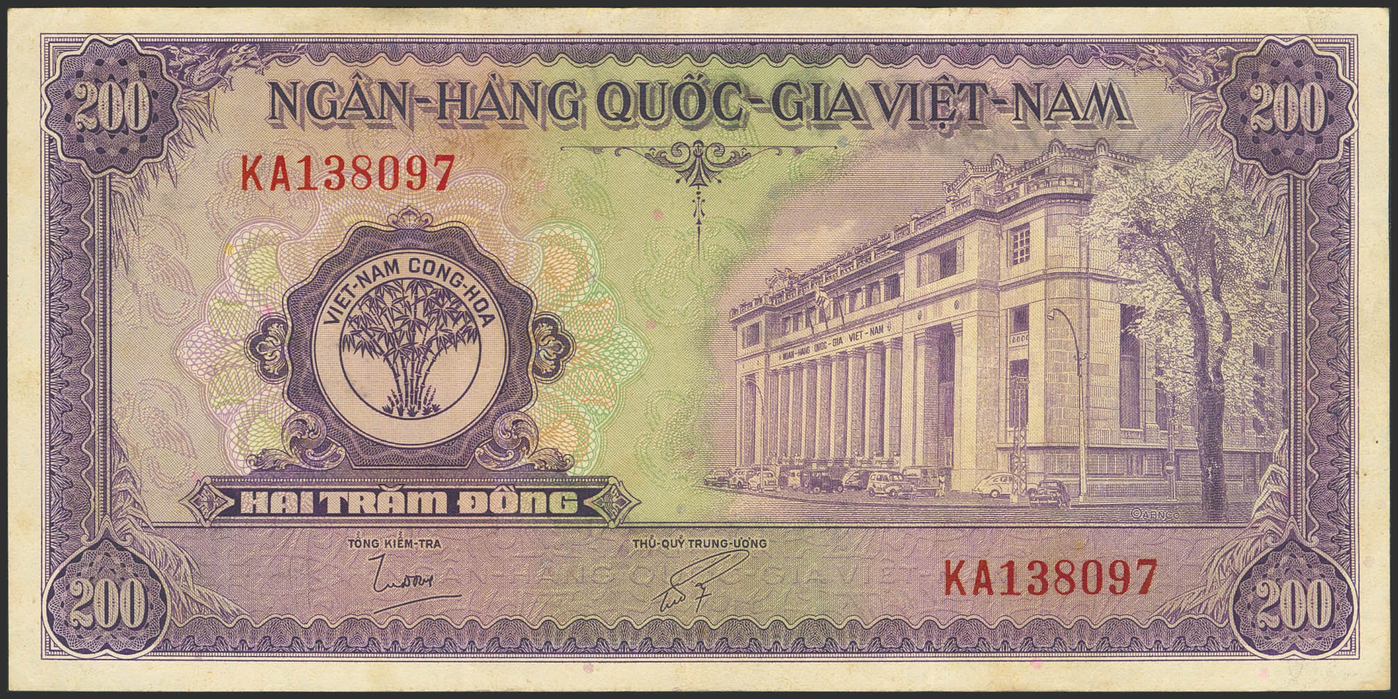 VIETNAM SOUTH. 200 Dong. (1958ca). National Bank. (Pick: 9a). Extremely Fine.