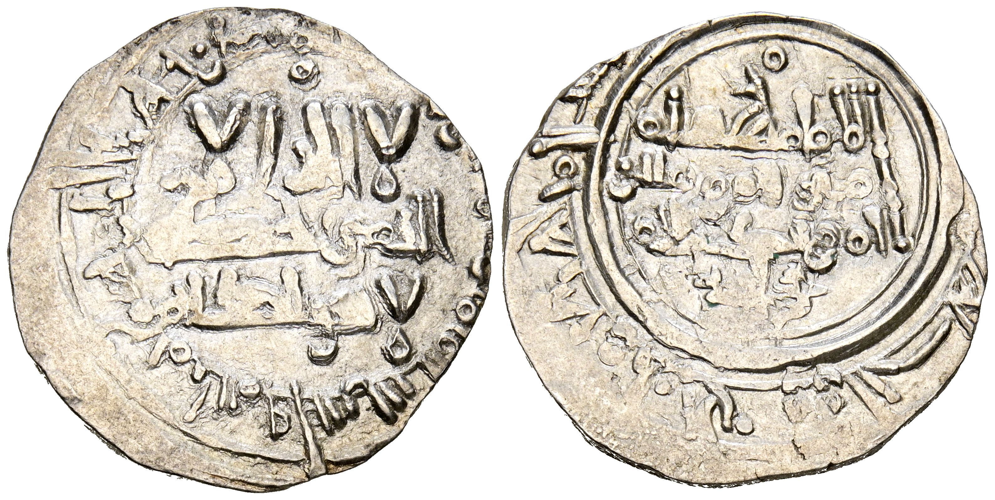 English CALIPHATE OF CORDOBA, Hisham II. Dirham. (Ar. 3.25g/22mm). 388H. Madinat Fas (Fez) / مدينة فاس. (You live 618). Citing Zirī/زيري in IIA. Very Fine-. Displaced coinage. Scarce.