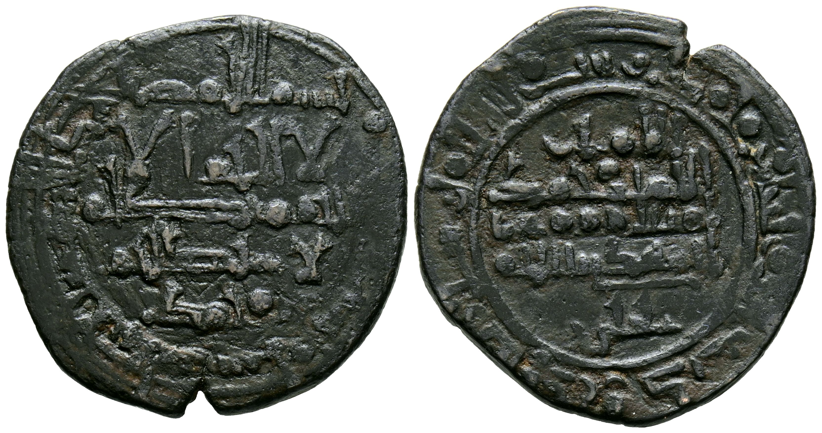 TAIFAS OF THE CALIPHATE, MÁLAGA (Hammudies). Muhammad Ibn Idris, Al-Mahdi. Dirham. (Ve. 4.43g/25mm). 440H. al-Ándalus / الاندلس. (Vives 859; Prieto 104a; Ariza Mu4.1). Citing محمد (Mohammad) in AI. and al يحيى /الامار (al-'Āmir Yahyā) in IIA. Very Fine.