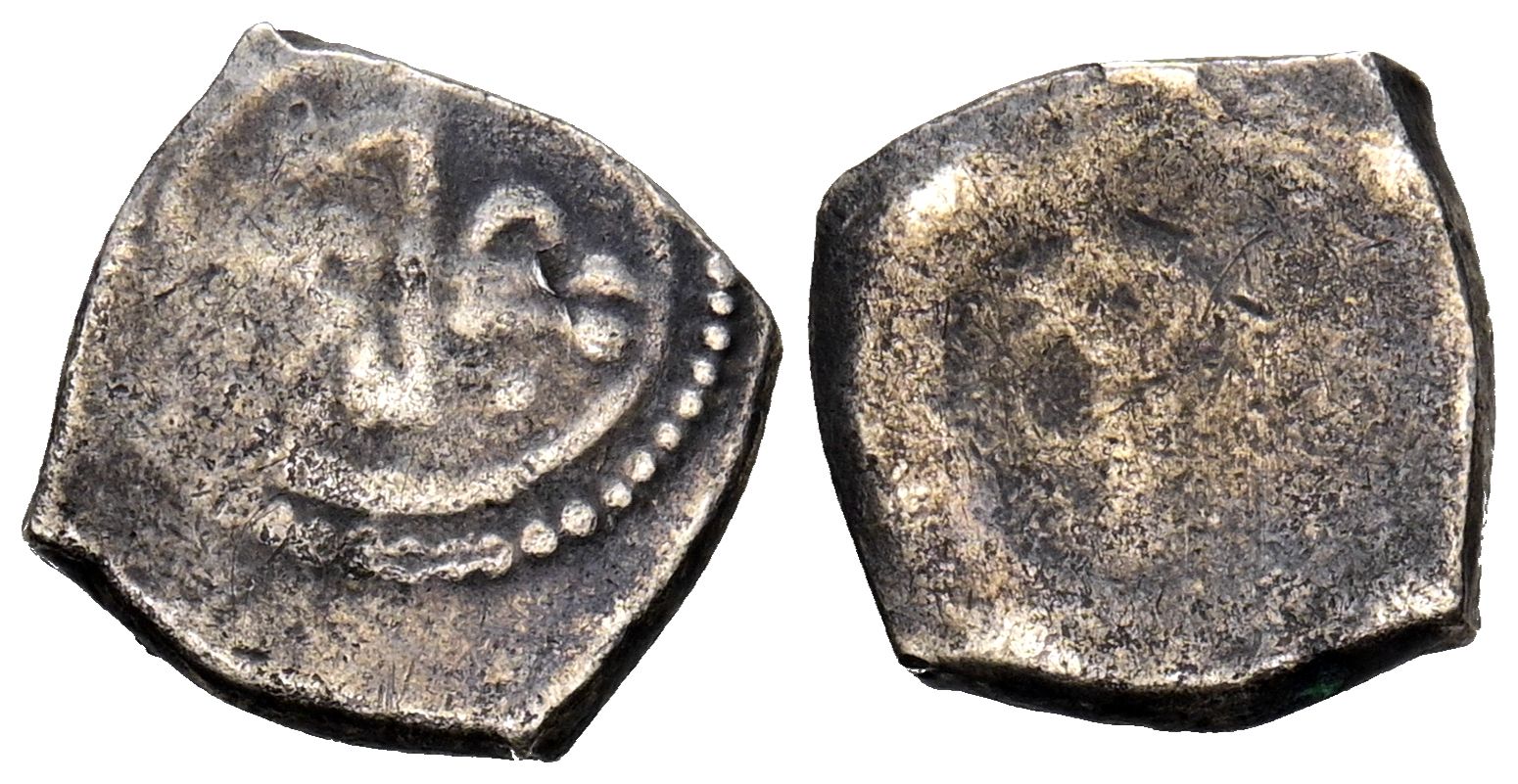 ALMORAVIDS. Ali Ibn Yusuf (500-537H). 1/2 Carat? (Ar. 0.92g/11mm). Uncut. (Vives Type 1693; Eustacche 328A, Benito Ca27). Obv: علي. Rev: Anepigraph. VF. Weak mintage. Scarce.