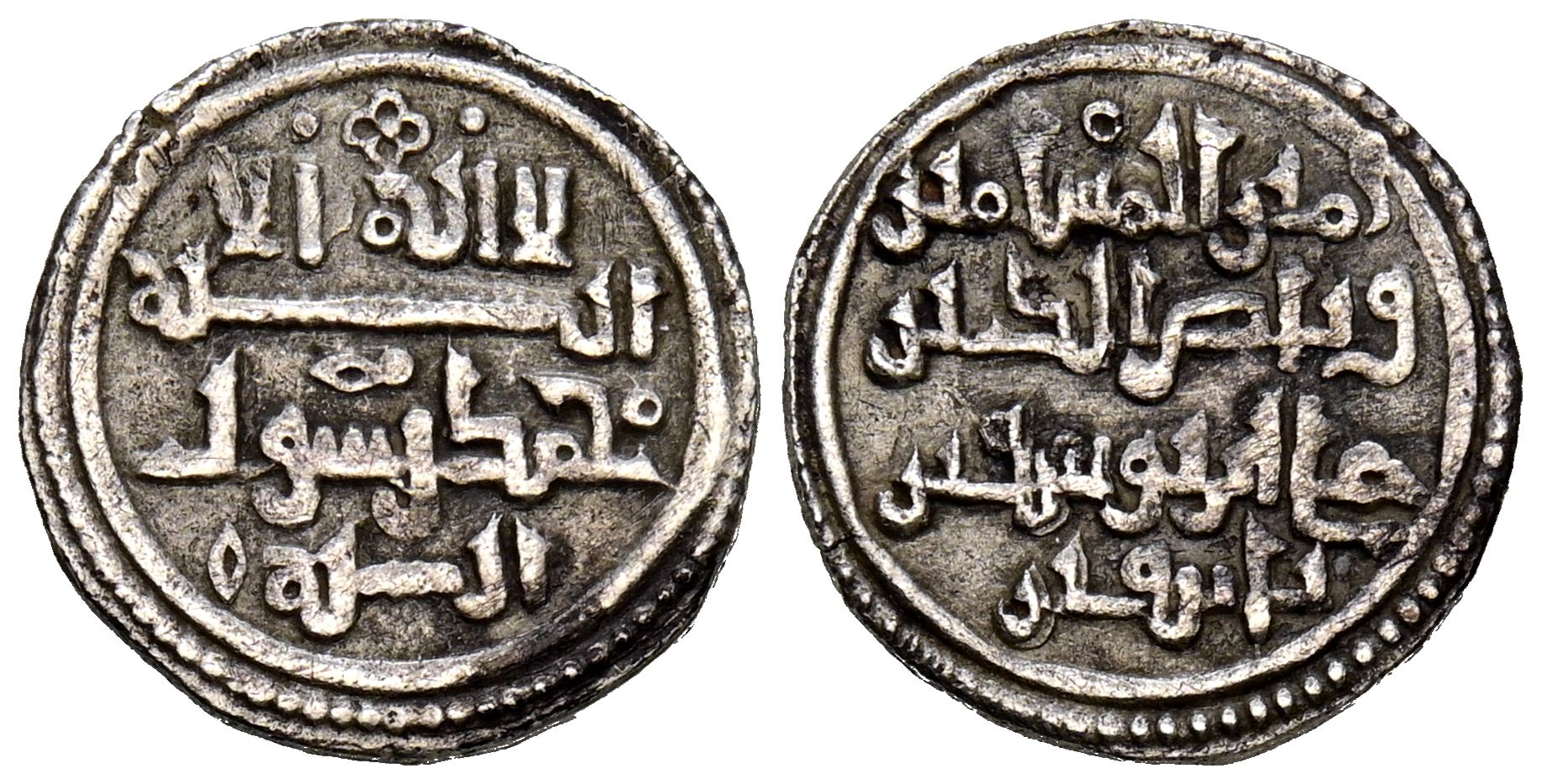 ALMORAVIDS, 'Ali ben Yusuf (500-537H). Get rid of yourself. (Ar. 0.92/13mm). (Vives does not cite; Martínez 14; Eustache 315A; Benito Cc8). Anv: 'Shahada' in four lines. Rev: امير المسلين (Amir al-Muslimin) / و ناصرالدين (and Nasir al-Din) / علي بن توسف بن (Ali son of Yusuf son of) / قا شفين (Tashfin). Extremely Fine. Very rare.