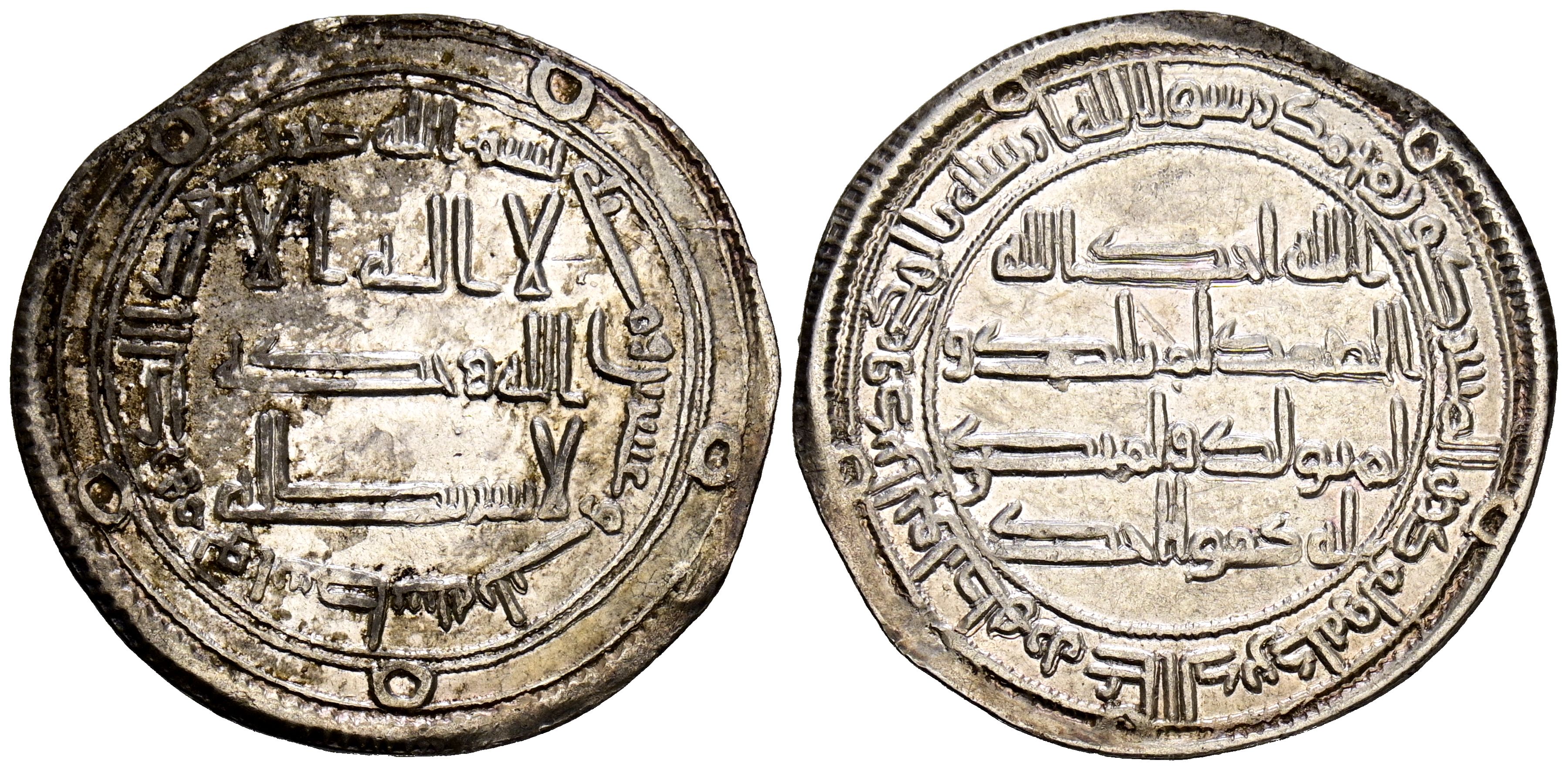 UMAYA CALIPHATE OF DAMAUncirculatedUS, Hisham Ibn Abd al-Malik. Dirham. (Ar. 2.91g/25mm). 123H. Wasit / واسط. (Album 137; Walker 574; Klat 716). VF+. Original luster with partial oxidation on the reverse.