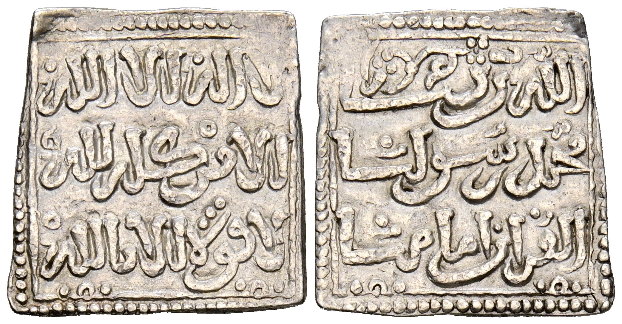 ANTI-ALMOHADS MERINIDS, Anonymous. Dirham. (Ar. 0.90g/14mm). S/D. (Hohertz 835; Medina 205). In the last line of IIA, instead of Al-Mahdi, there is a mention of the Quran: القران امامنا ('The Quran is our Imam'). VF+. Precise and rare copy.