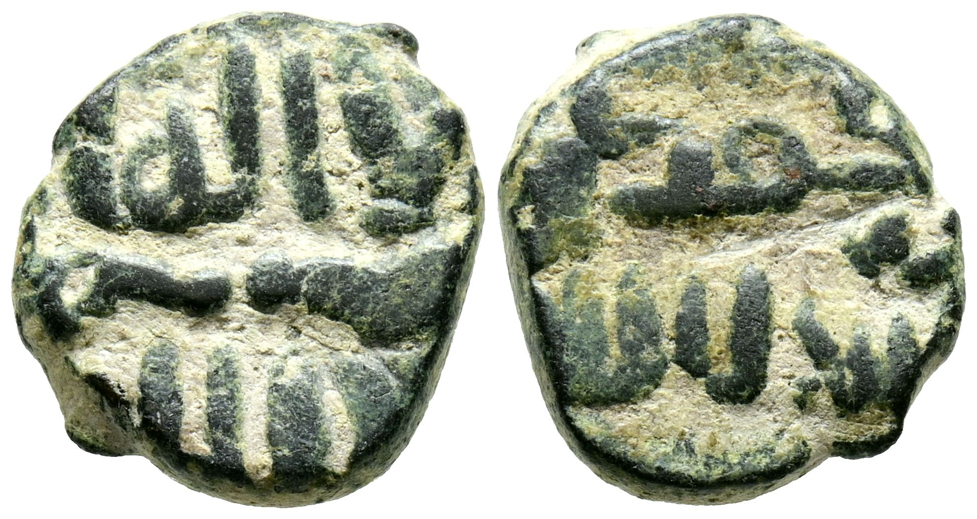DEPENDENT EMIRATE OF CÓRDOBA, PERIOD OF GOVERNORS. Anonymous. Felus. (Ae. 3.19g/14mm). S/D. (Frochoso II-e). Anv: لاالله/ لااله ا with serpentine ornaments. Rev: رسول الله / محمد with tulip ornament. Very Fine.