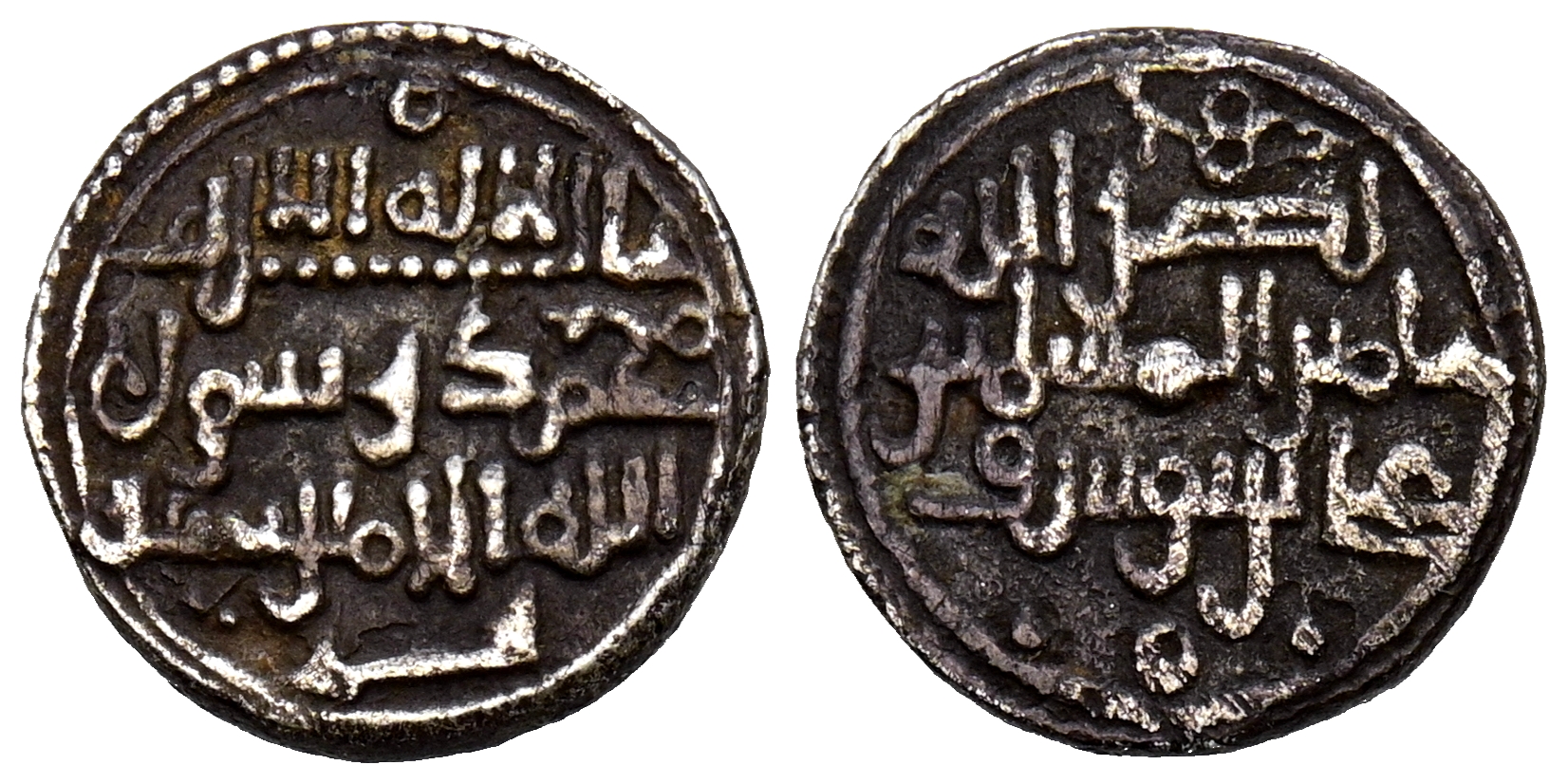 ALMORAVIDS, Ali ben Yusuf and the Emir Sir (522-533 AH). Quirate. (Ar. 0.86g/11mm). S/D. (Vives 1773; Hazard 980; Benito Ce4). Obv: 'Shahada' in three lines, below it cites the heir: الامير سير. Rev: Presents Ali with titles of Amir al-Muslimin, above the title of: بصر الله (Nars Allah). VF+. Scarce.