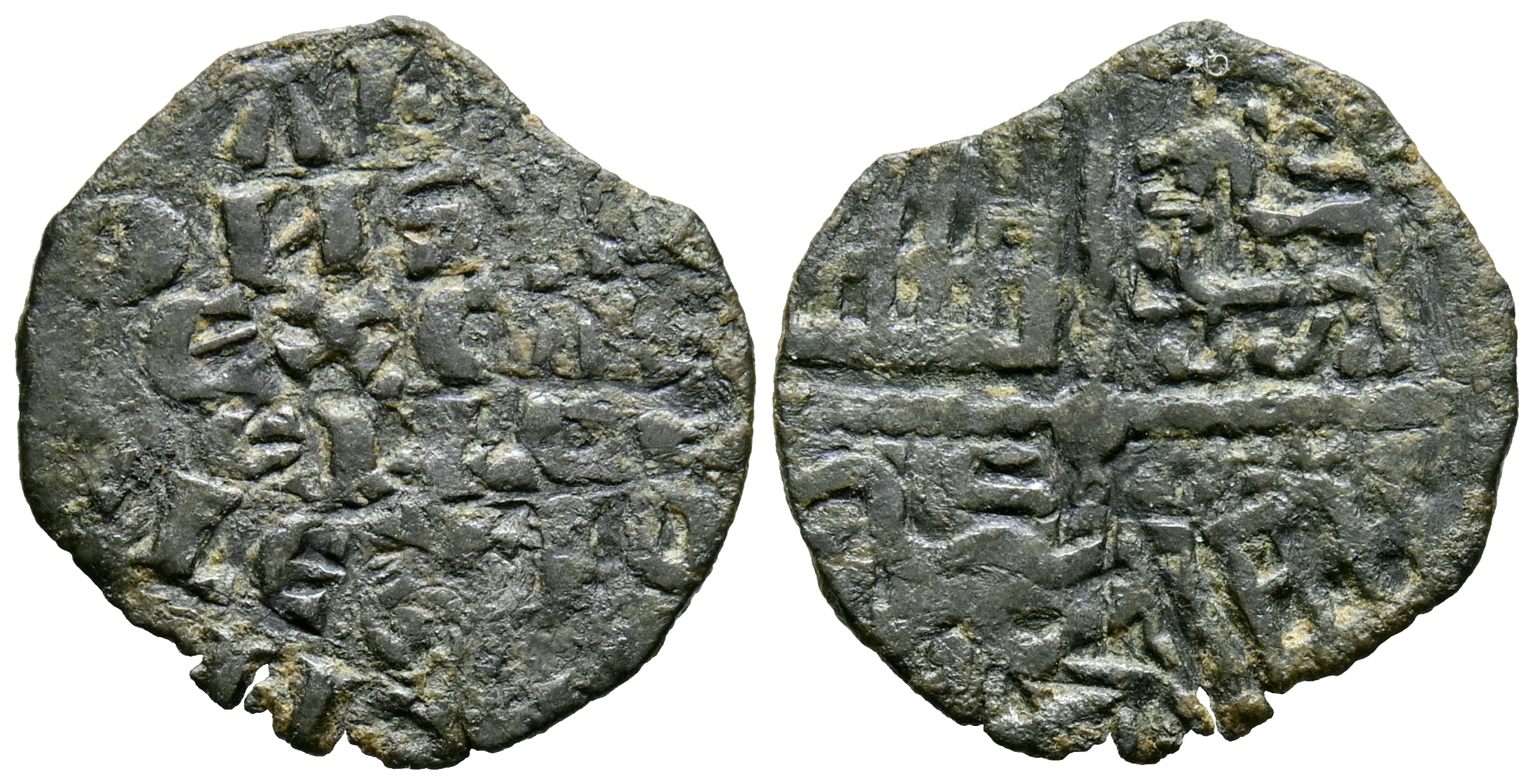 ALFONSO X (1252-1284). Alfonsine coin "of the 1st Granada War". (Ve. 0.72g/17mm). Mint mark with central dot. (Imperatrix A10:4.72; FAB-no citation). Obv: Legend in six lines: ALF/ONSVS/REX CAS/TELLE E/T LEGIO/NIS. Rev: Quartered with castles and lions, with a central dot. VF-. Scarce.