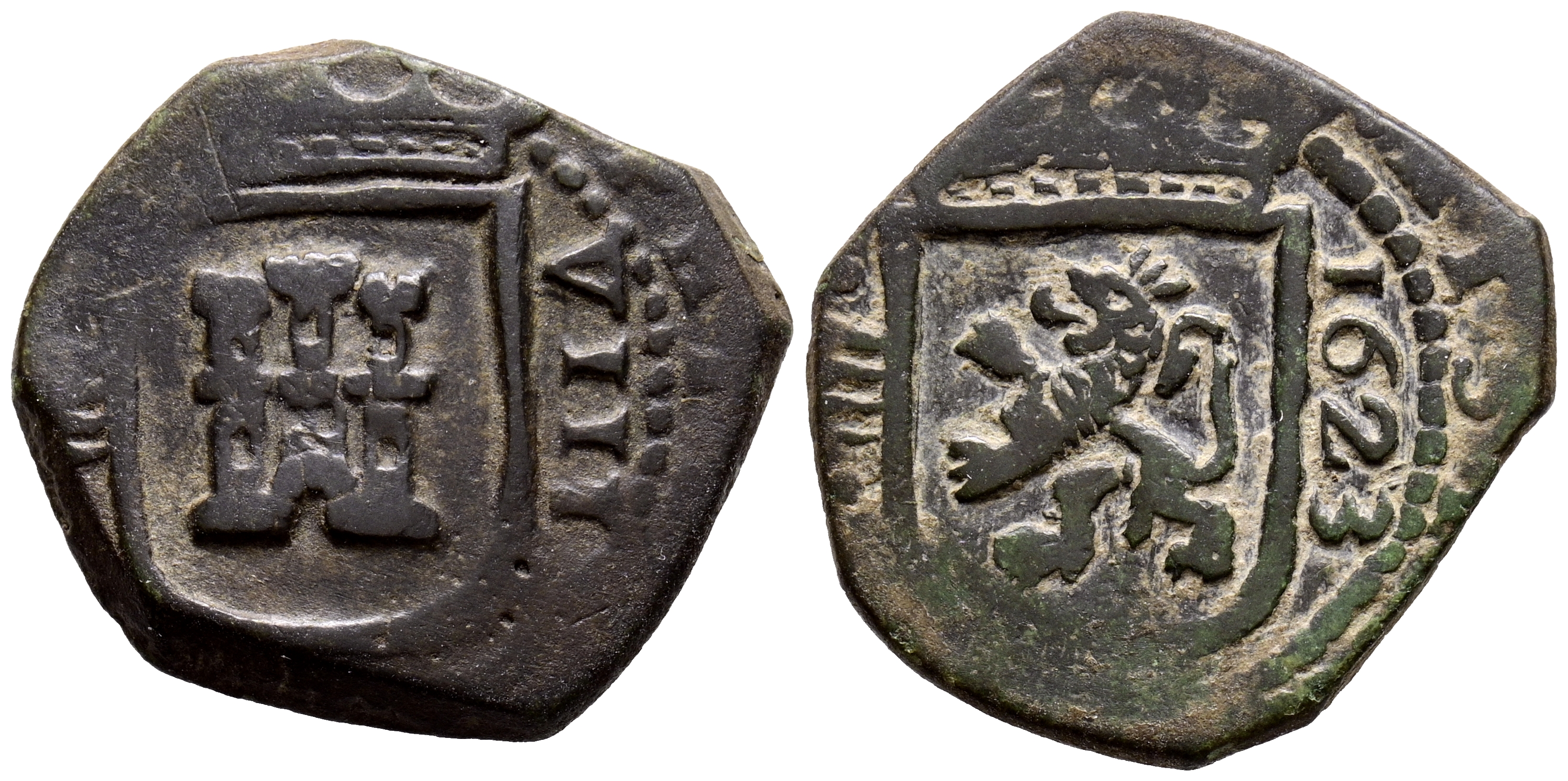 English PHILIP IV (1621-1665). 8 Maravedís. (Weight 6.12g/22mm). 1623. Valladolid. (Cal-2019-432). Very Fine. Good example.