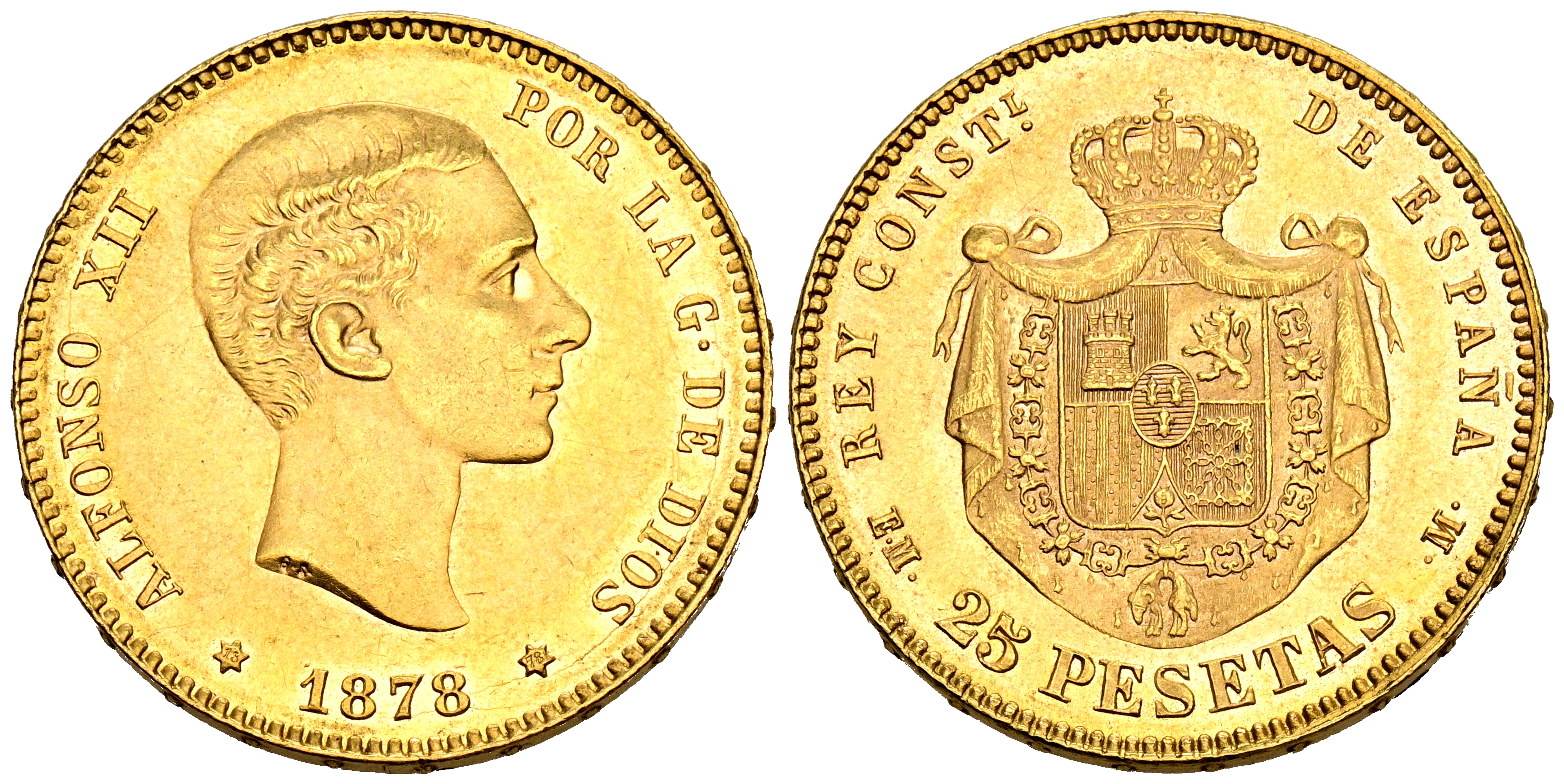 ALFONSO XII (1874-1885). 25 Pesetas. (Au. 8.05g/24mm). 1878 *18-78. Madrid EMM. (Cal-2019-71). Extremely Fine.