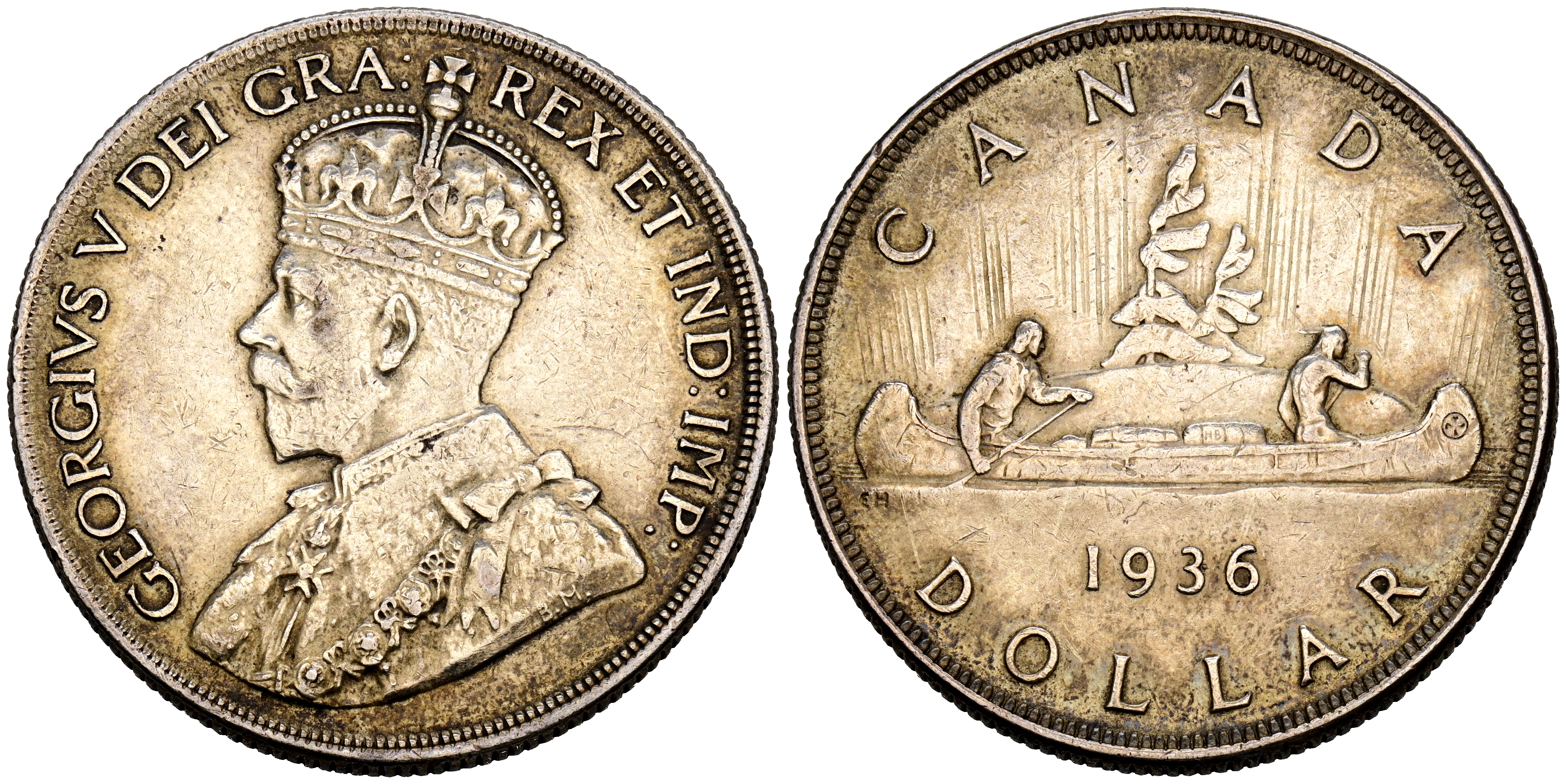 English CANADA, George V. 1 Dollar. (Ar. 23.36g/36mm). 1936. (Km#31). Good Very Fine. Nice patina.