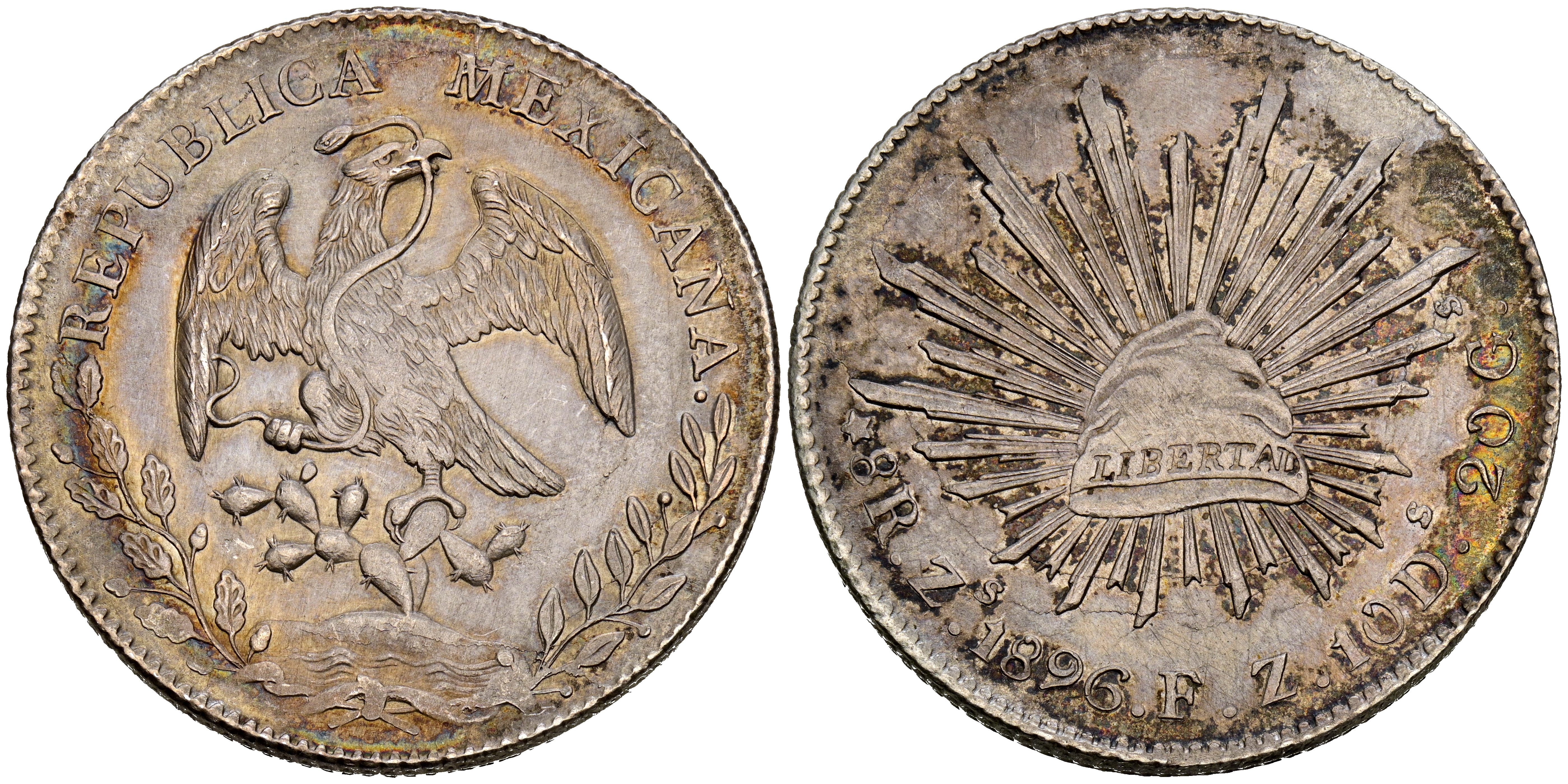 English MEXICO. 8 Reales. (Ar. 27.09g/39mm). 1896. Zacatecas FZ. (Km#377.13). Very Fine.