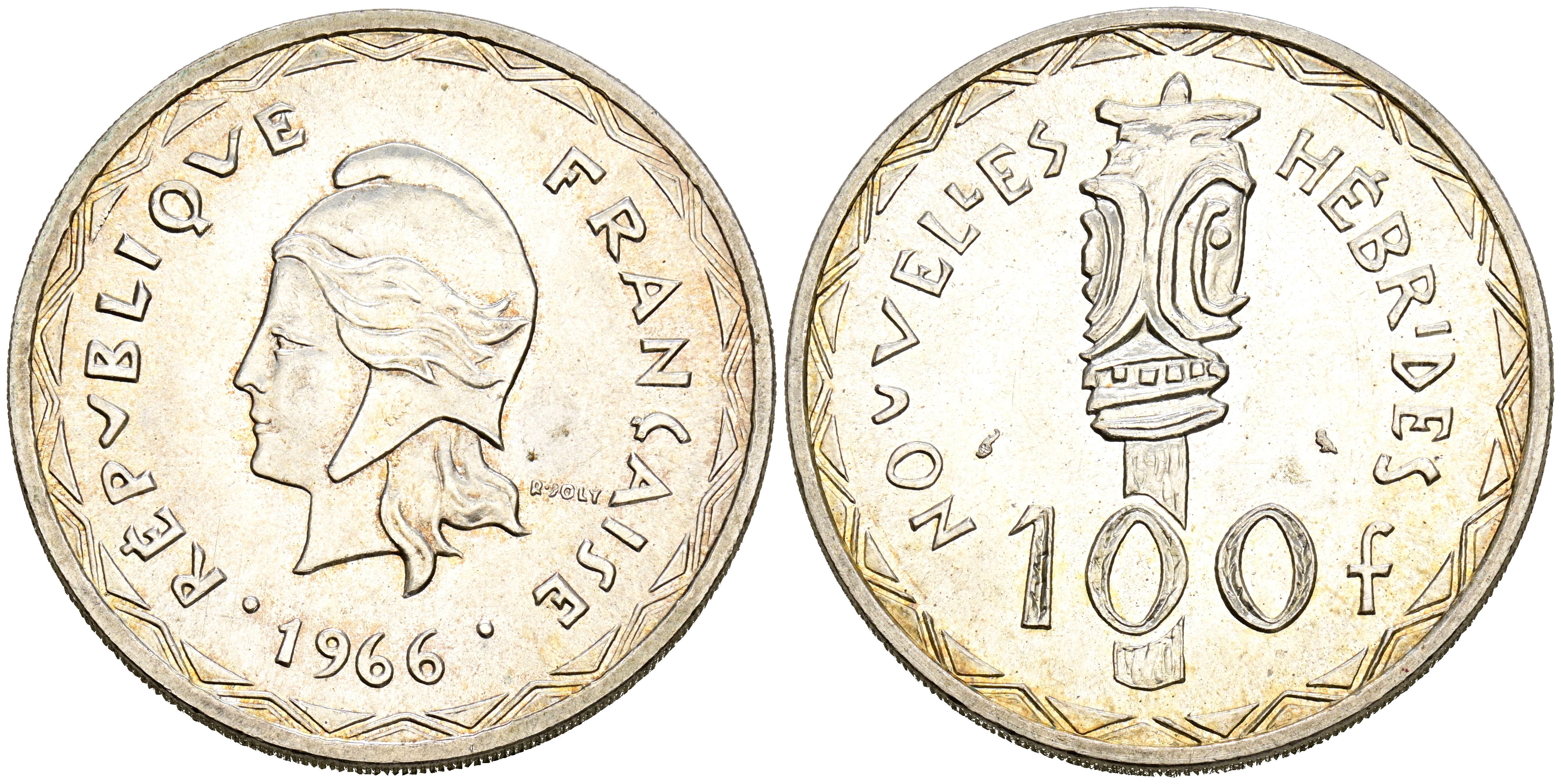 English NEW HEBRIDES. (France). 100 Francs. (Ar. 25.02g/37mm). 1966. (Km#1). Good Extremely Fine.