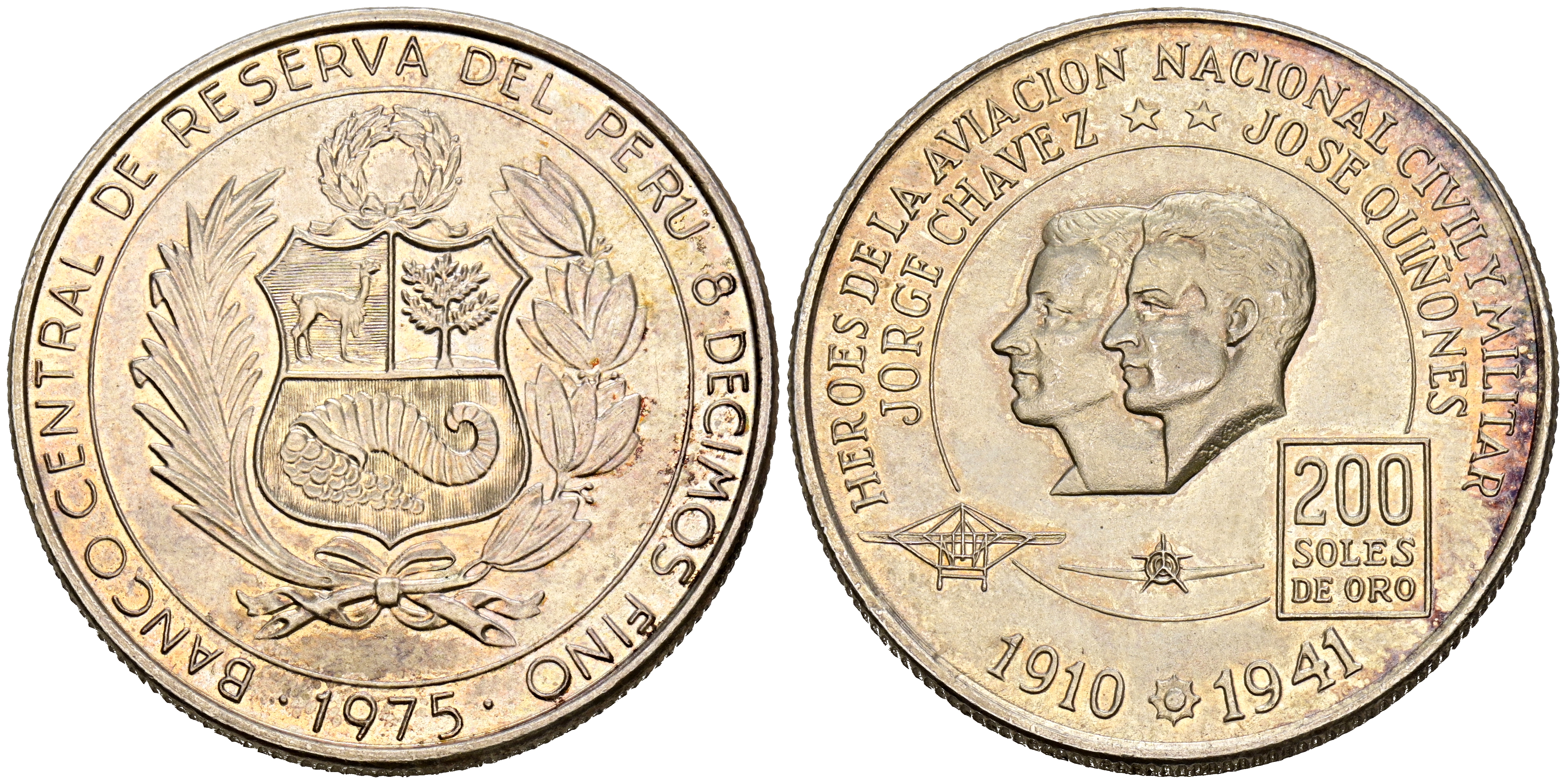 PERU. 200 Soles. (Ar. 21.74g/37mm). 1975. Heroes of National Aviation. (Km#262). EF-.