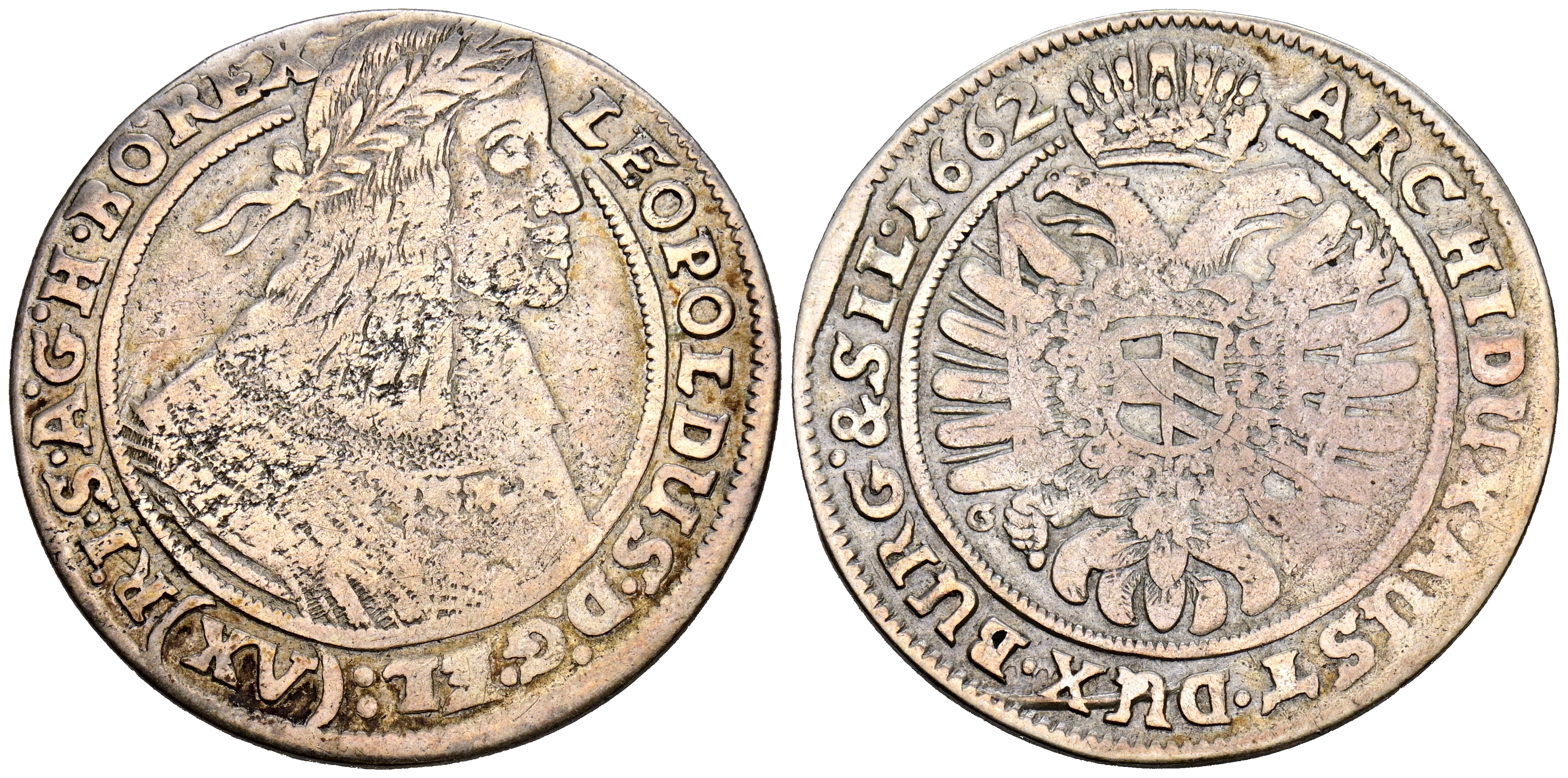 POLAND, Leopold I. 15 Kreuzers. (Ar. 5.68g/29mm). 1662. Silesia (Austrian Empire). (Km#414). Very Fine.