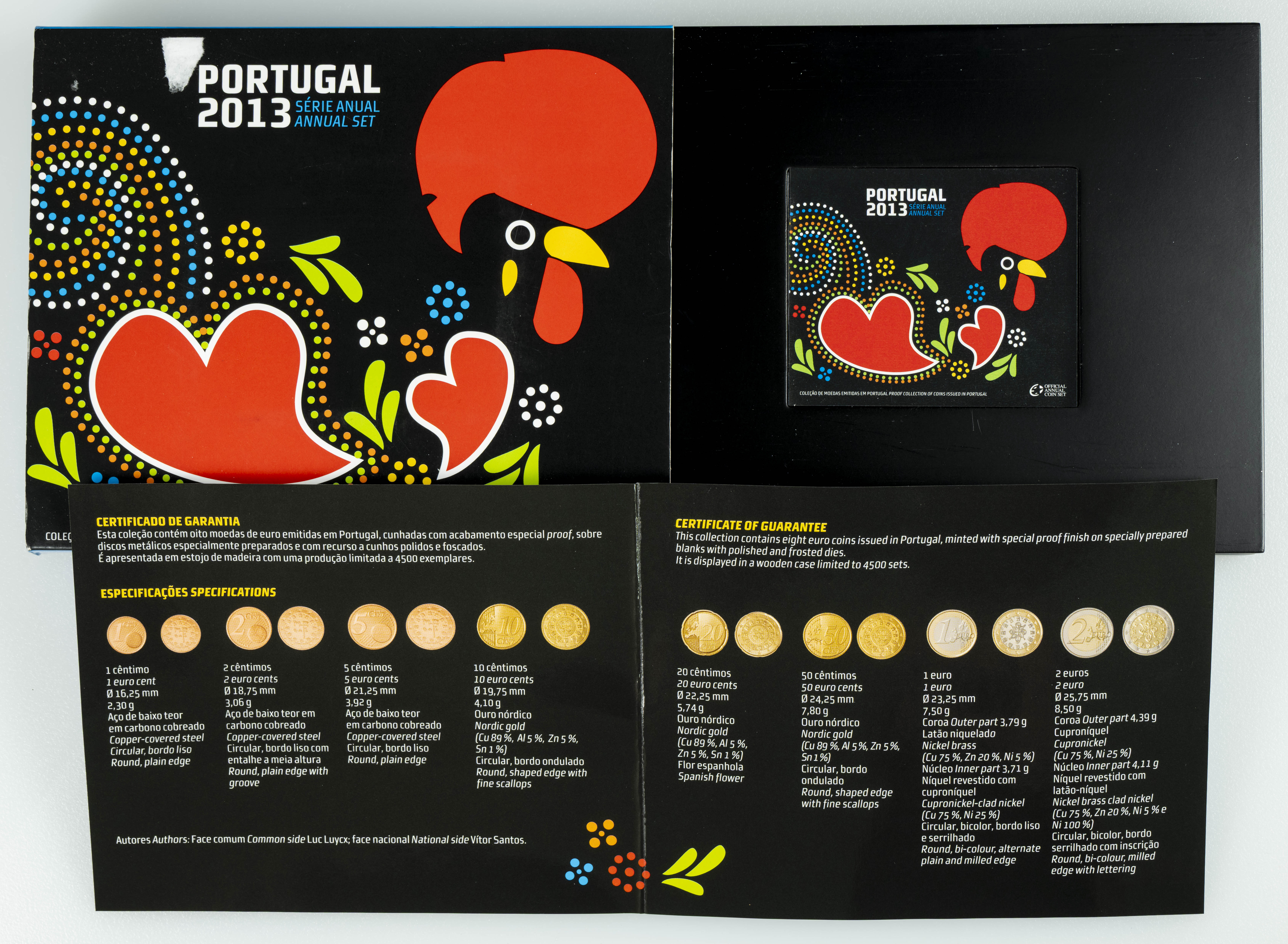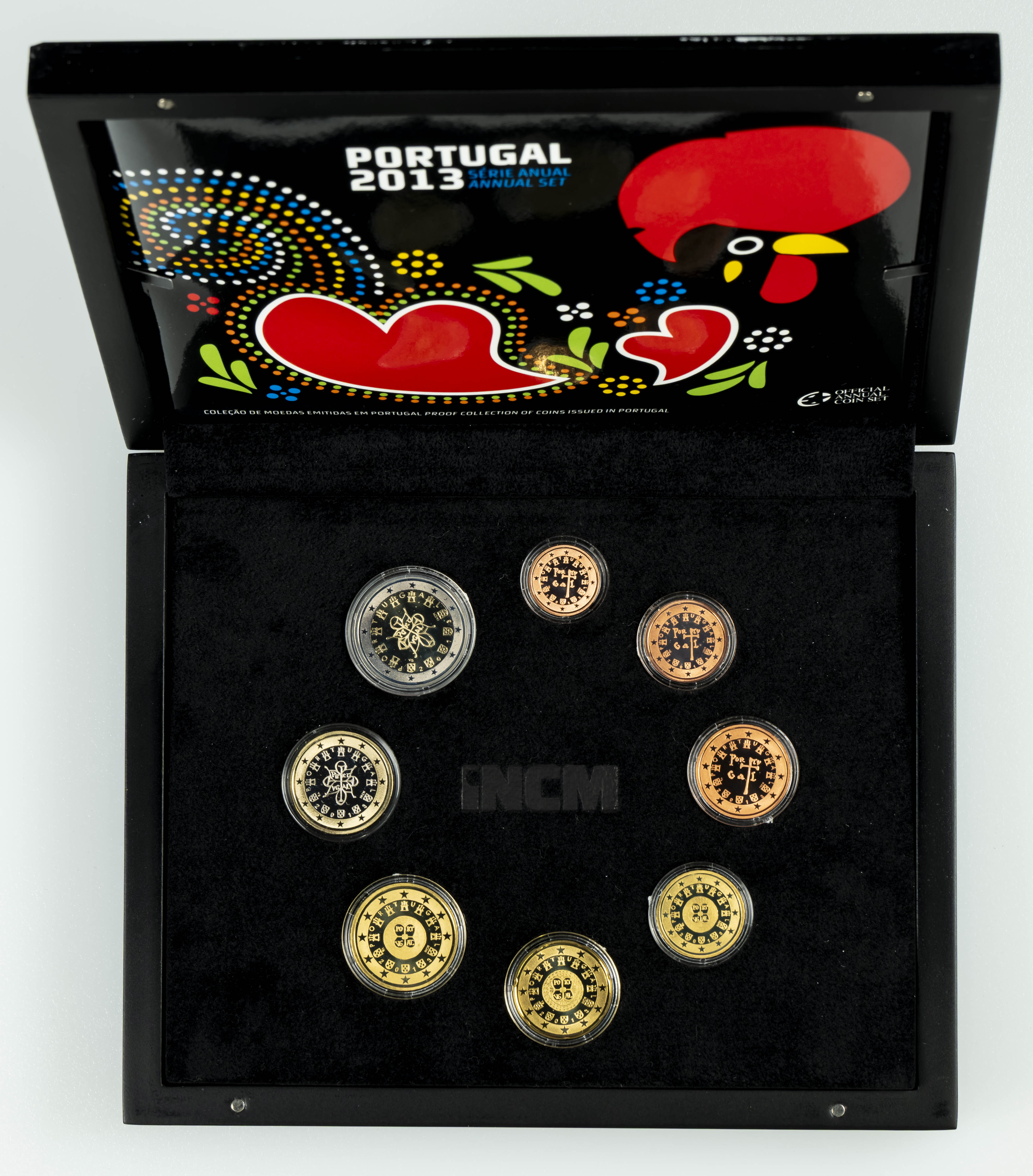 English PORTUGAL. 2013 Annual Series. Official case containing 8 securities ranging from 1 cent to 2 euros. PROOF.