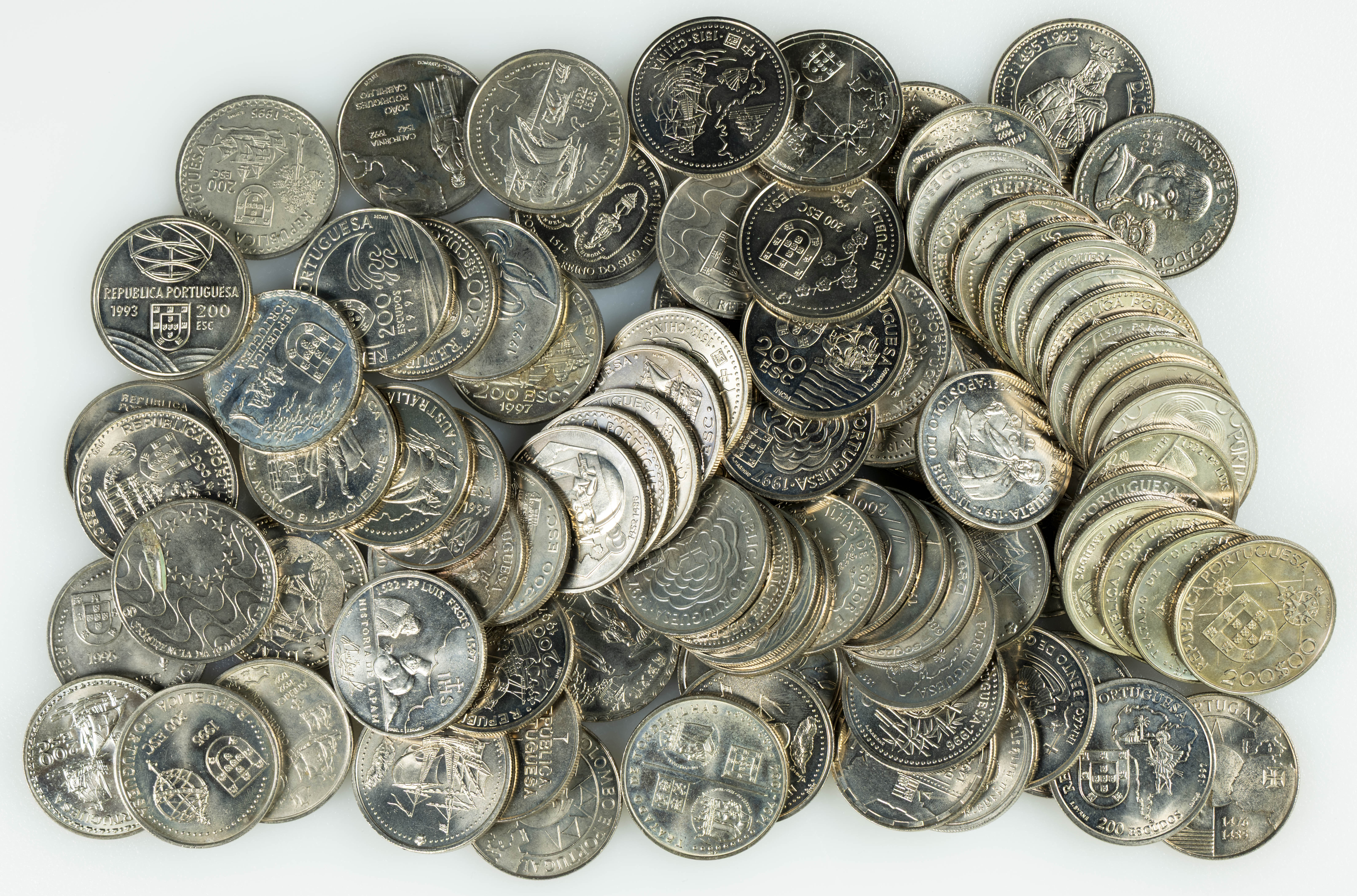 English PORTUGAL. Set of 88 200 Escudo coins minted in the 1990s. A wide variety of types, all in excellent condition. TO BE EXAMINED.