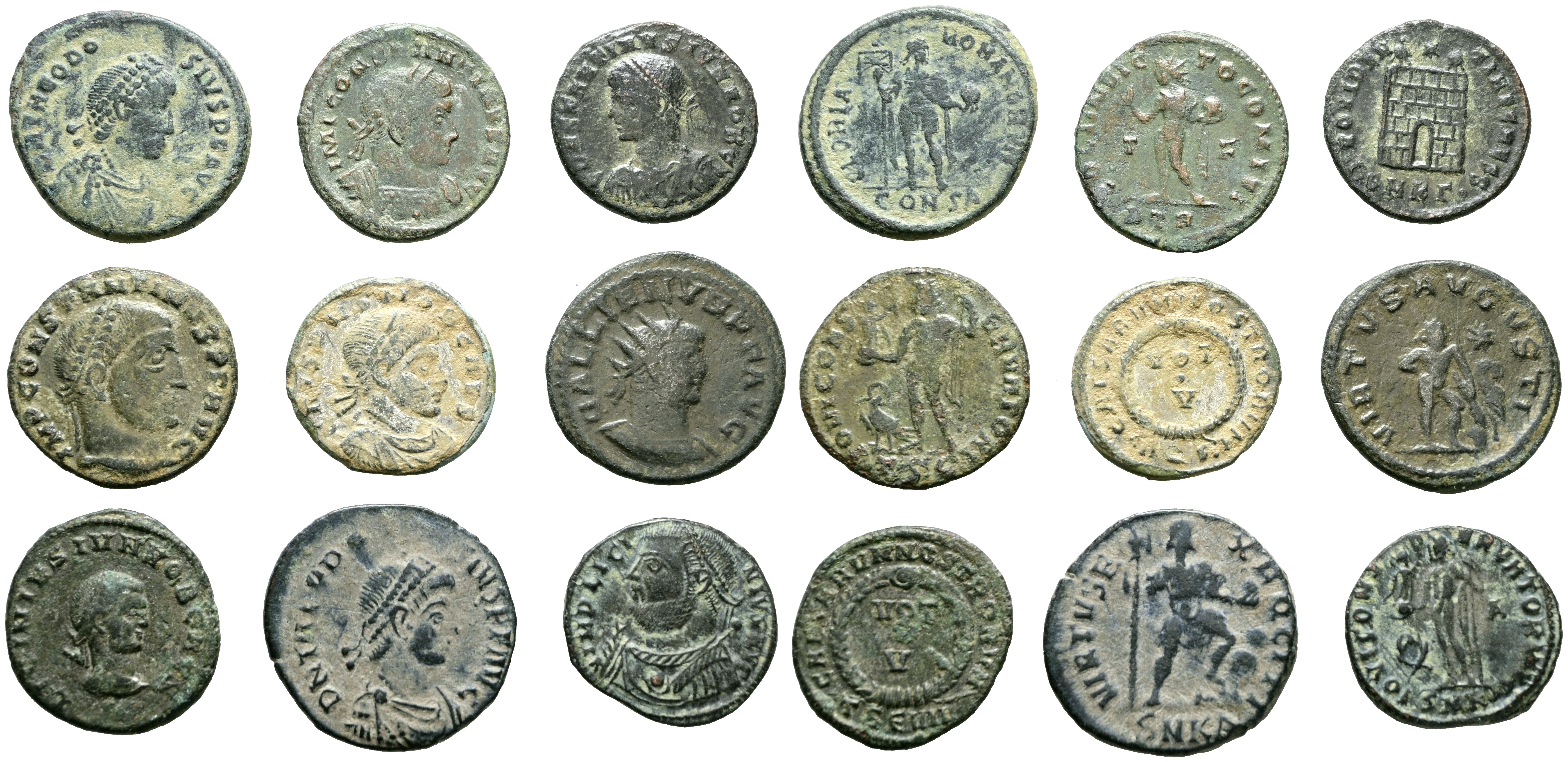 IMPERIO ROMANO. Conjunto de 9 bronces del bajo imperio romano de distintos emperadores y reversos. A EXAMINAR.