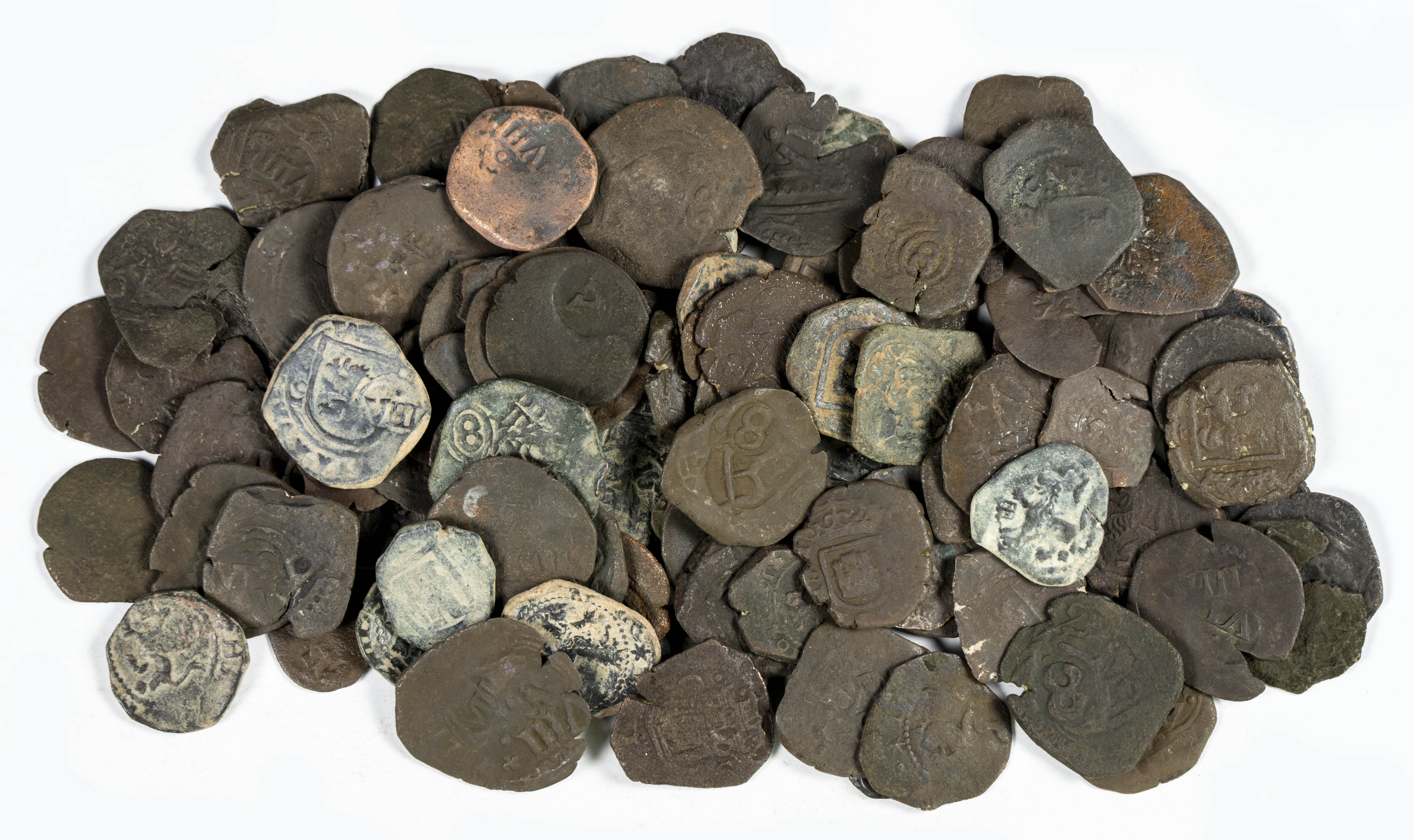 English SPANISH MONAGoodHY. An interesting and extensive collection of 100 copper coins from the Habsburg dynasty. Of particular note is the wide variety of designs, some of which are countermarked, and the dates and mint marks. Worth examining.