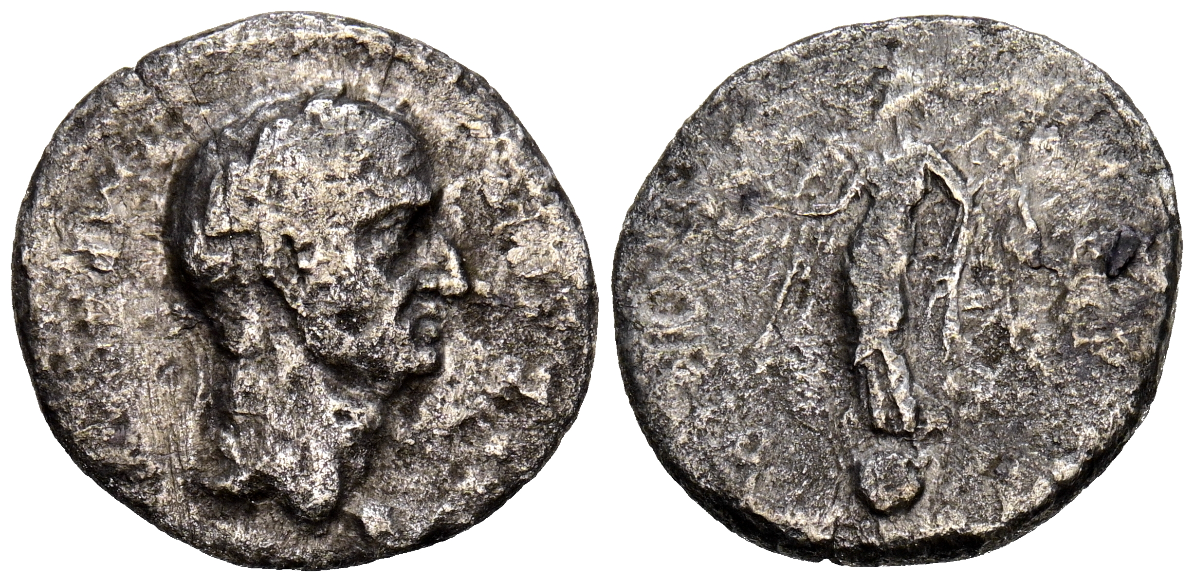 GALBA. Denarius. (Ar. 2.80g/17mm). 68-69 AD Rome. (RIC 217). Obv: Head of Galba laureate facing right, around legend: IMP SER GALBA CAESAR AVG. Rev: Victory facing left bearing laurel wreath and palm, around legend: VICTORIA P R. Fine-.