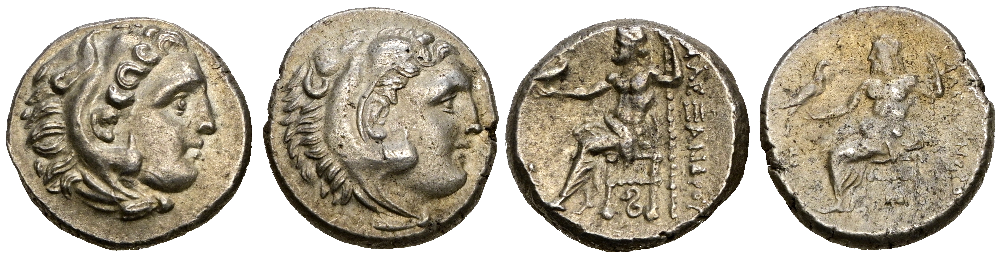 English Kings of Macedonia, Alexander III the Great. Interesting pair of drachmas. Different mints, sizes, and states of preservation. To be examined.