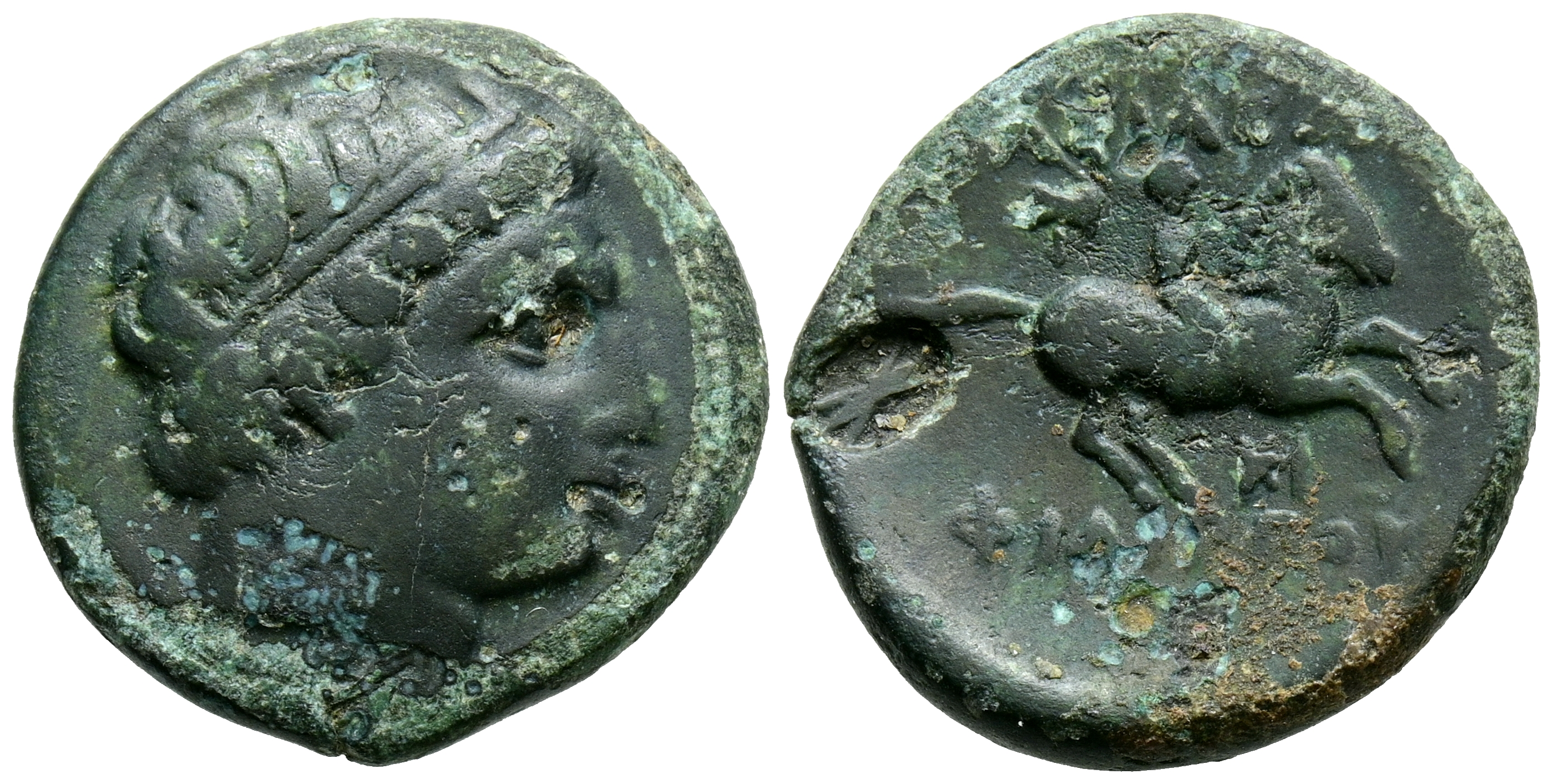 KINGS OF MACEDONIA, Philip III Arrhidaios. Ae15. (Ae. 4.33g/16mm). 323-317 Fine. Uncertain mint in western Asia. (Price 2803). Obv: Head of Heracles with lion skin to right within a Macedonian shield. Rev: Macedonian helmet, Greek monogram to left, caduceus to right. VF.