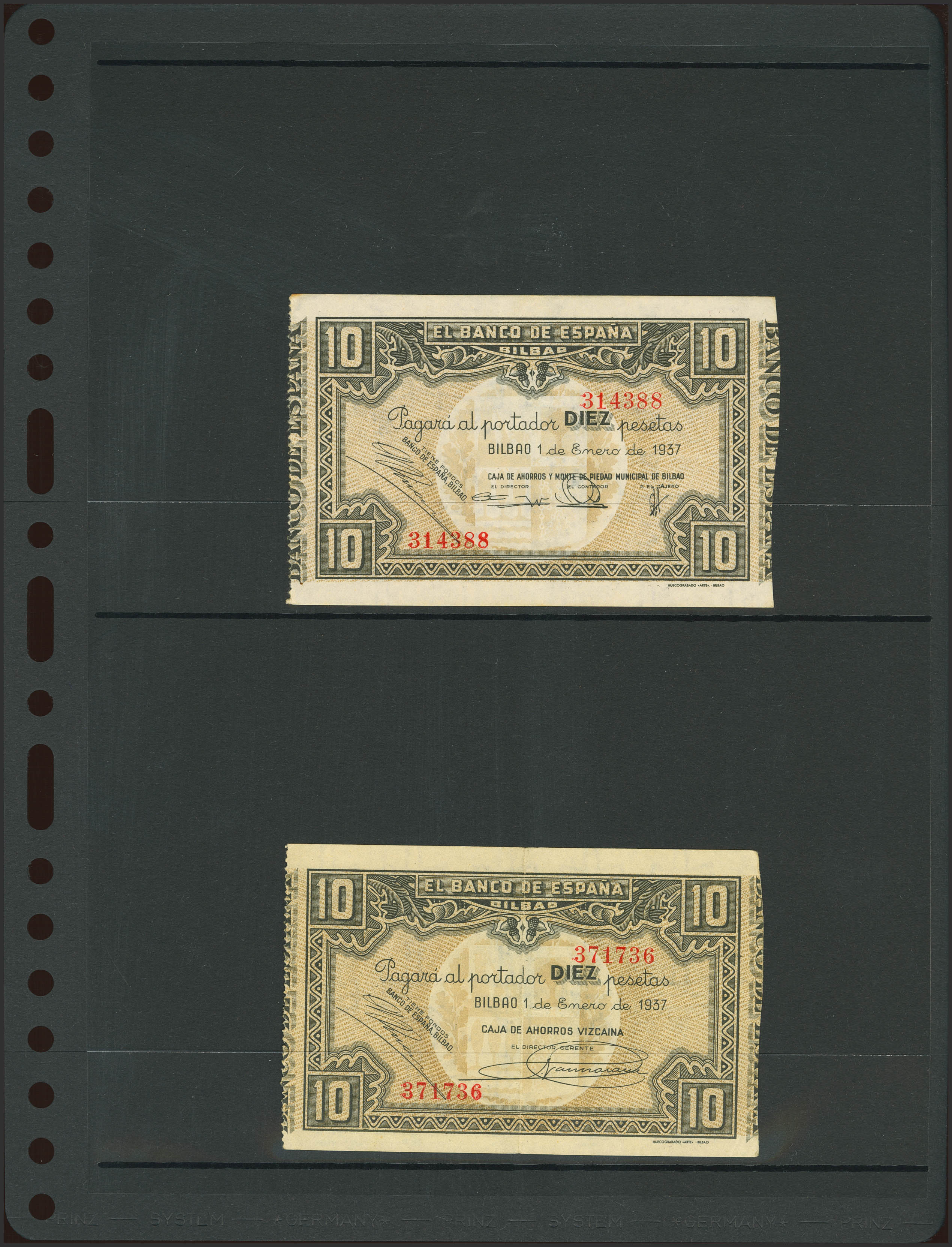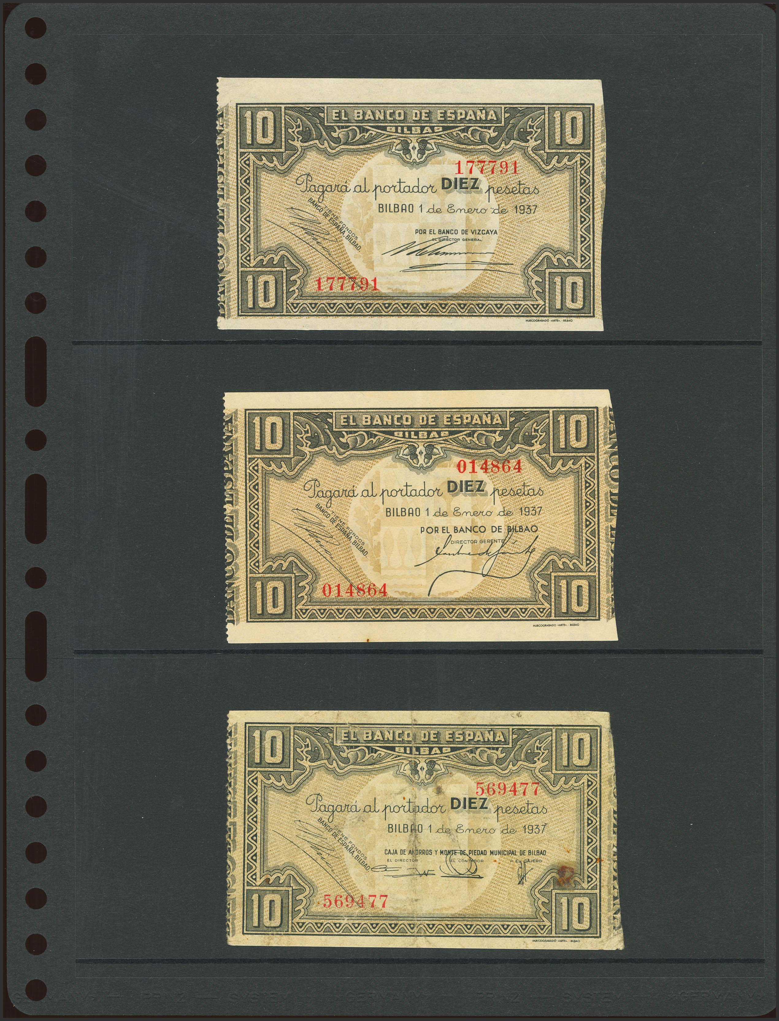 Set of 5 ten-peseta banknotes issued by the Bank of Bilbao, dated January 1, 1937, all without series numbers and with most of the known countersignatures (except for the Central Bank and the Bank of Commerce). (Edifil 2023: 387). EF/Fine-.