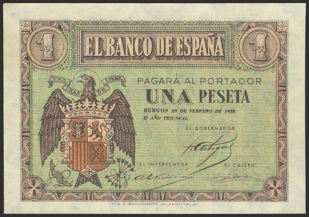 1 Peseta. February 28, 1938. Series C. (Edifil 2023: 427a). Original finish. Uncirculated.