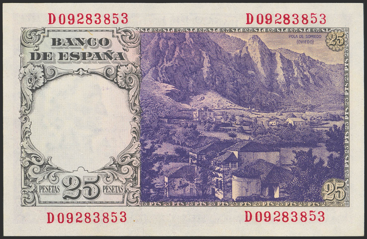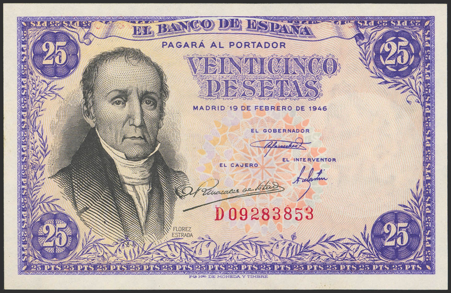 25 Pesetas. February 19, 1946. Series D. (Edifil 2023: 450a). Original finish. Uncirculated.
