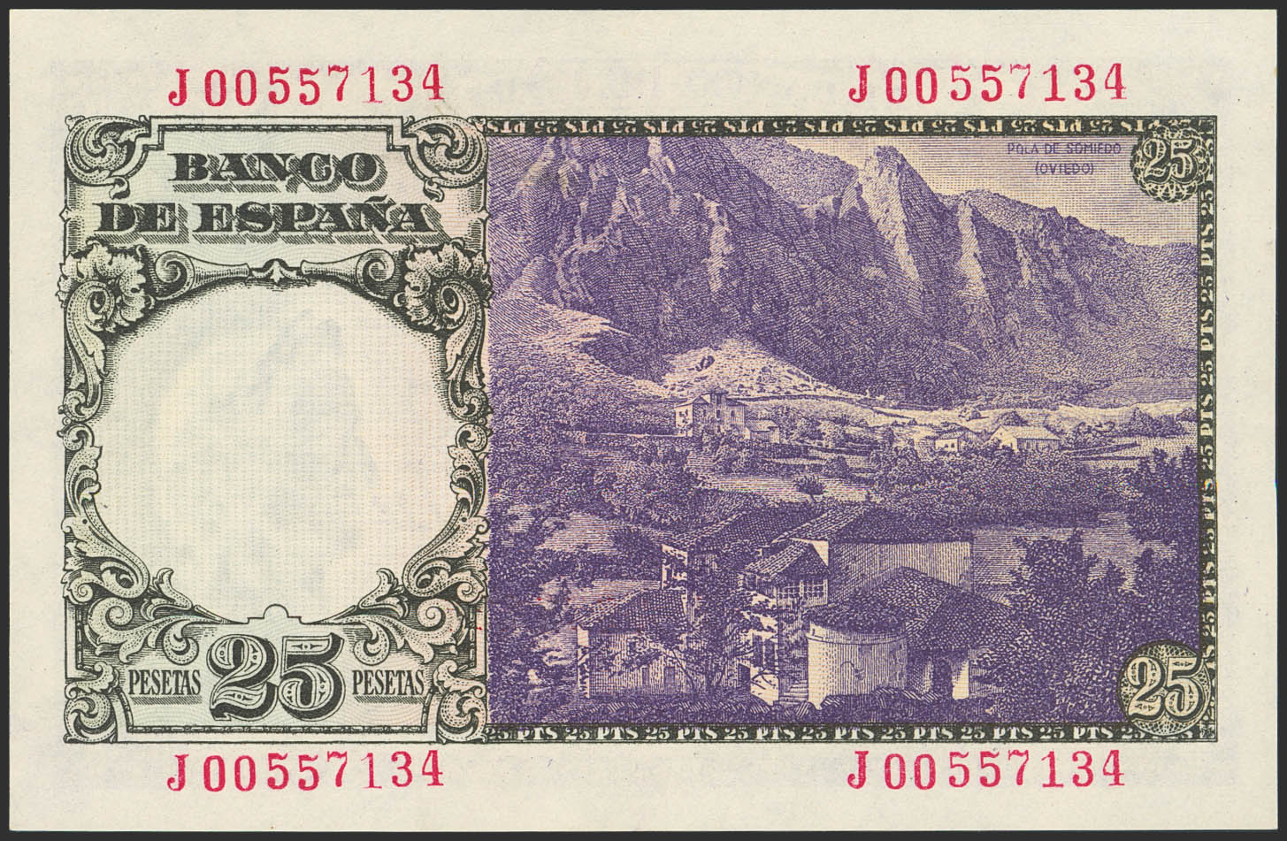 25 Pesetas. February 19, 1946. Series J. (Edifil 2023: 450a). Original finish. Uncirculated.
