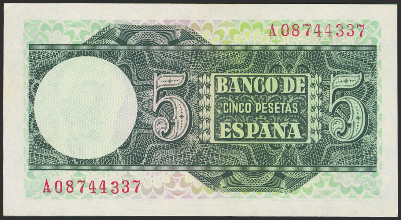 5 Pesetas. March 5, 1948. Series A. (Edifil 2023: 455a). Original finish. Uncirculated-.