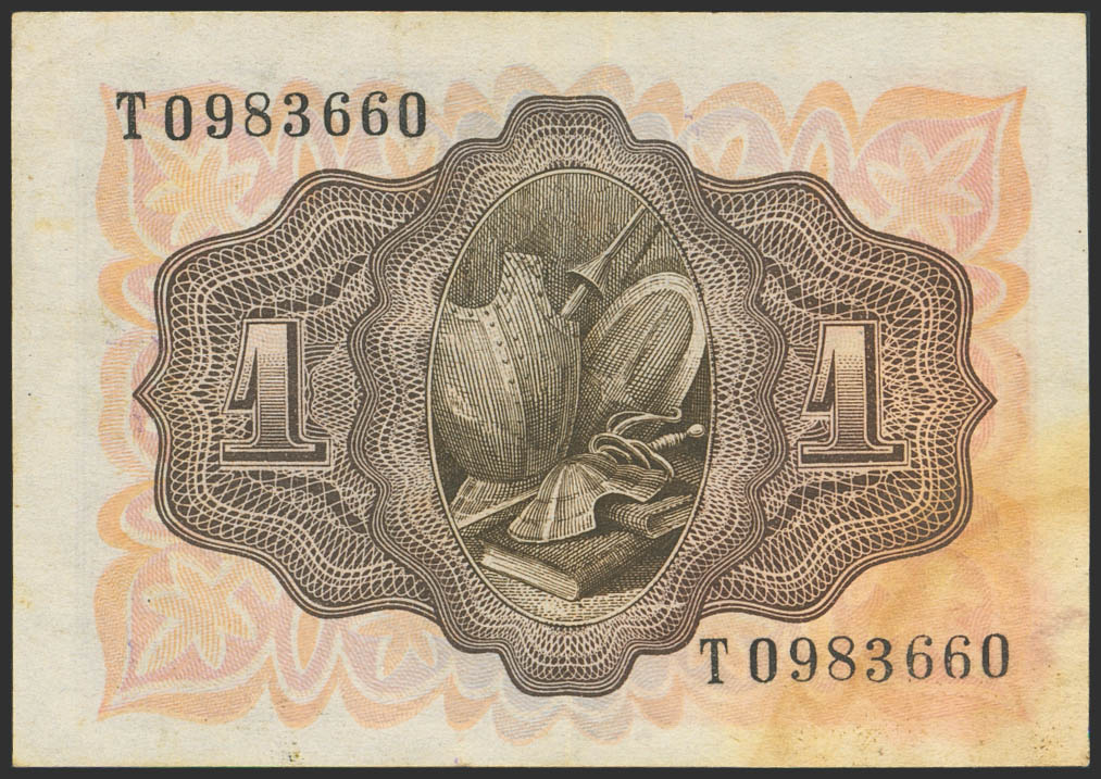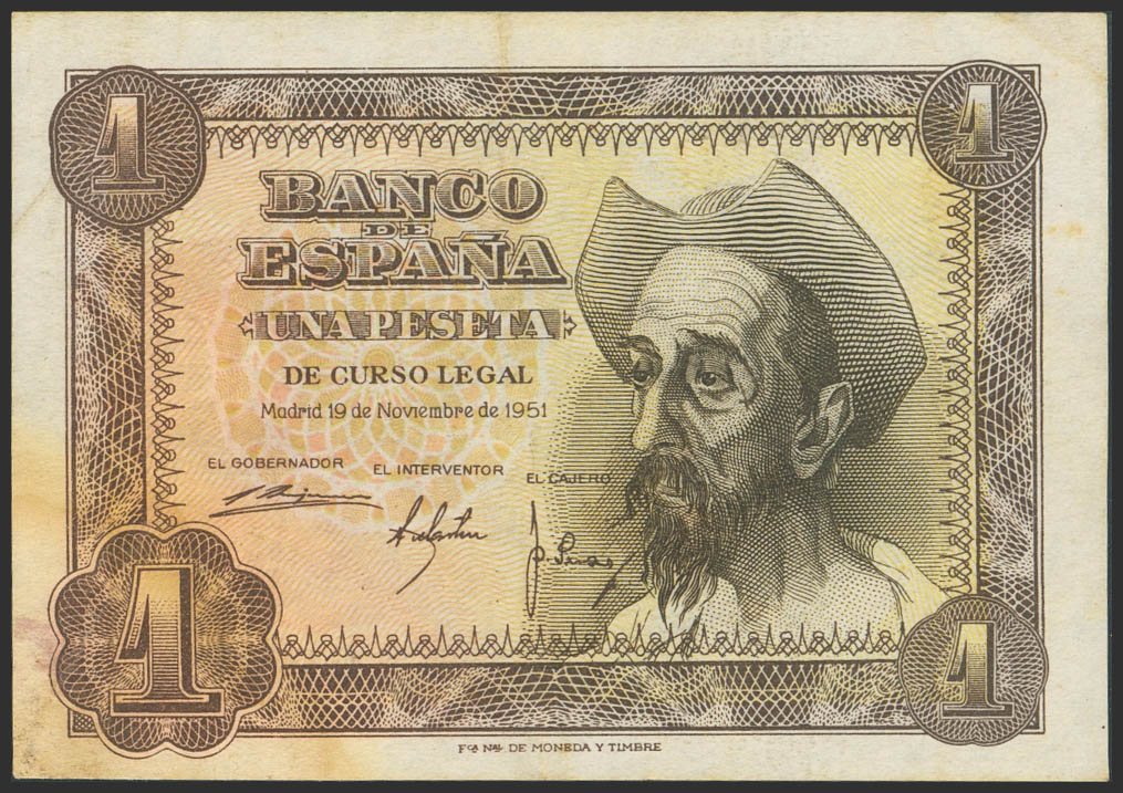 English 1 Peseta. November 19, 1951. Series T, last series issued. (Edifil 2021: 461b). Very Fine-.
