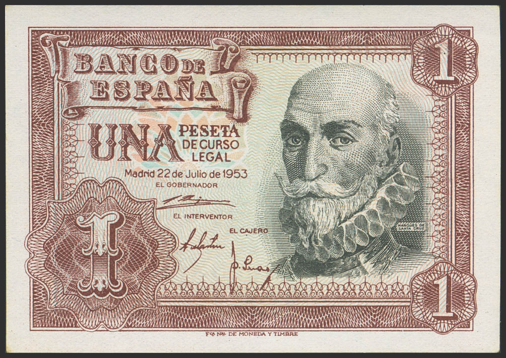 1 Peseta. July 22, 1953. No series. (Edifil 2023: 465). Original condition. Uncirculated.