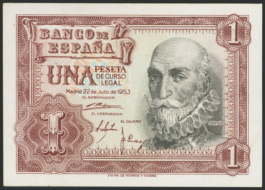 1 Peseta. July 22, 1953. Series A. (Edifil 2023: 465a). Original finish. Uncirculated-.