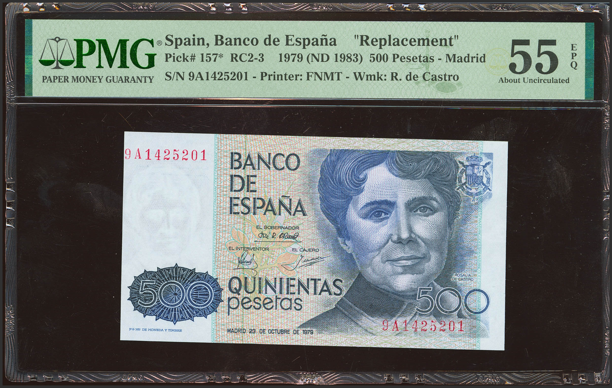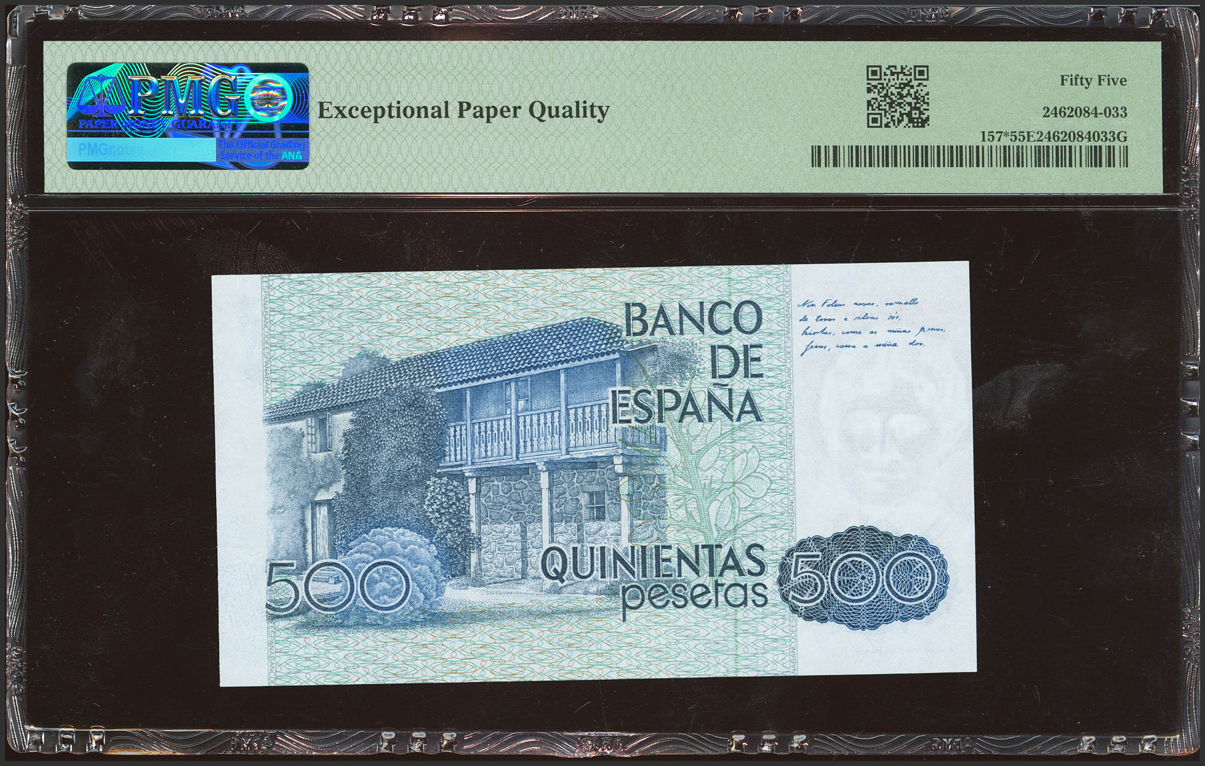 500 Pesetas. October 23, 1979. Special Series 9A. (Edifil 2023: 476b, Pick: 157*). Good Extremely Fine. PMG55EPQ package.
