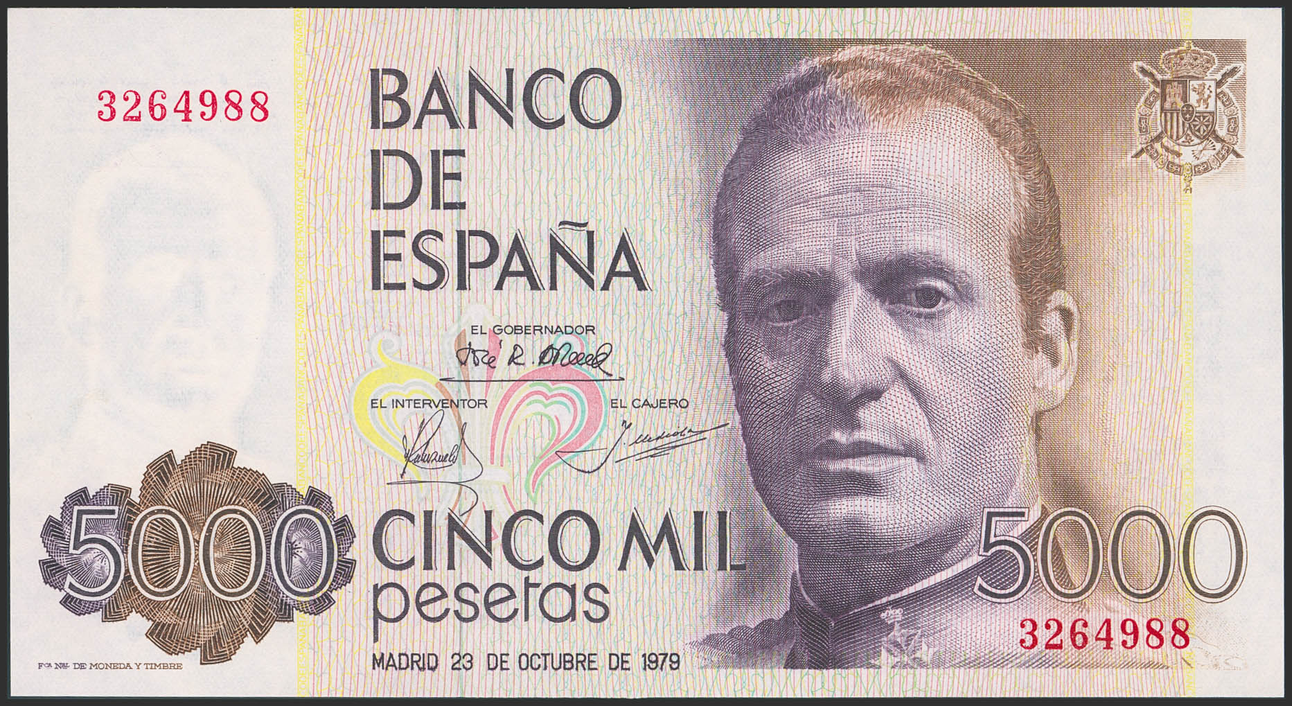 5000 Pesetas. October 23, 1979. No series. (Edifil 2023: 478). Uncirculated.