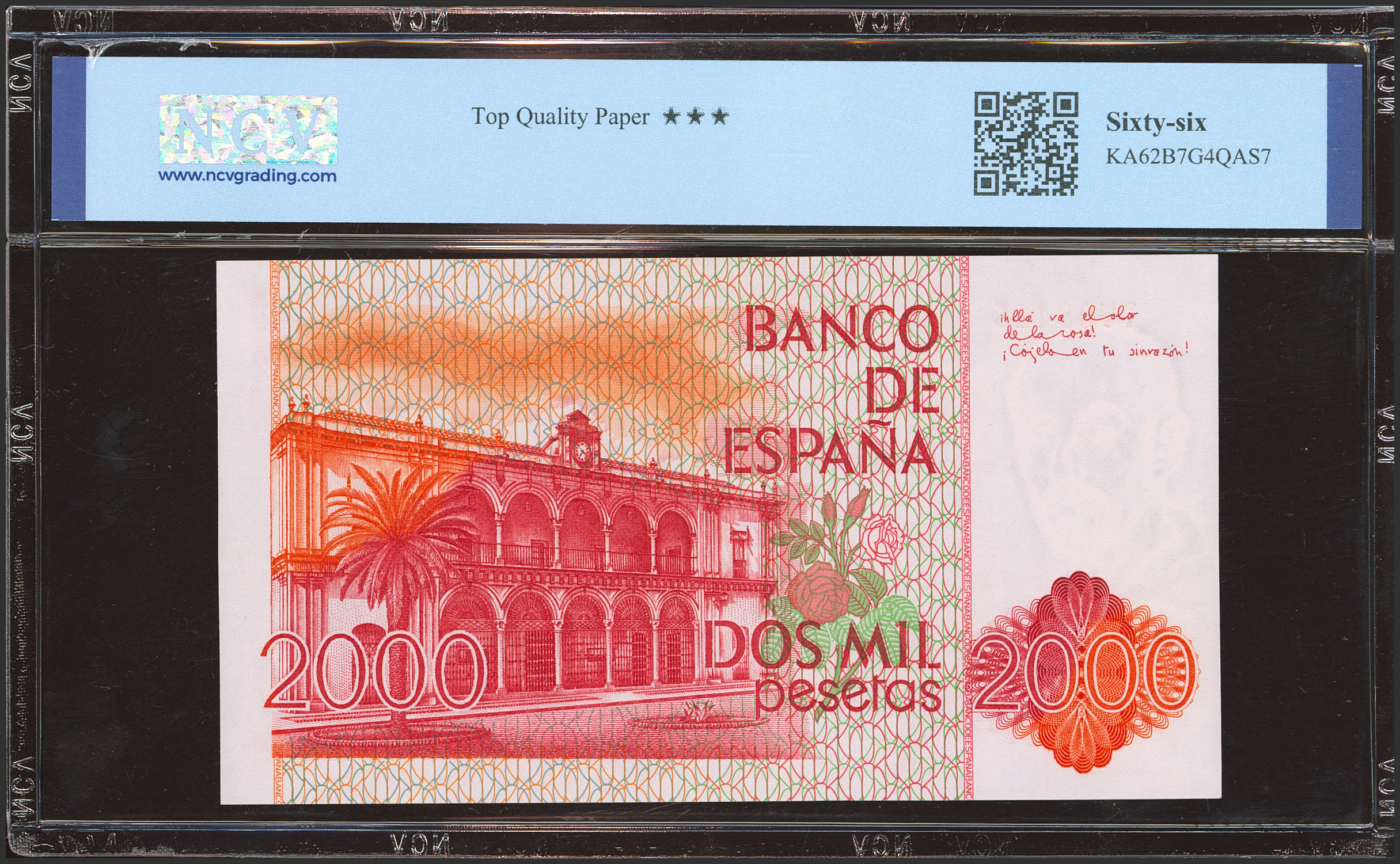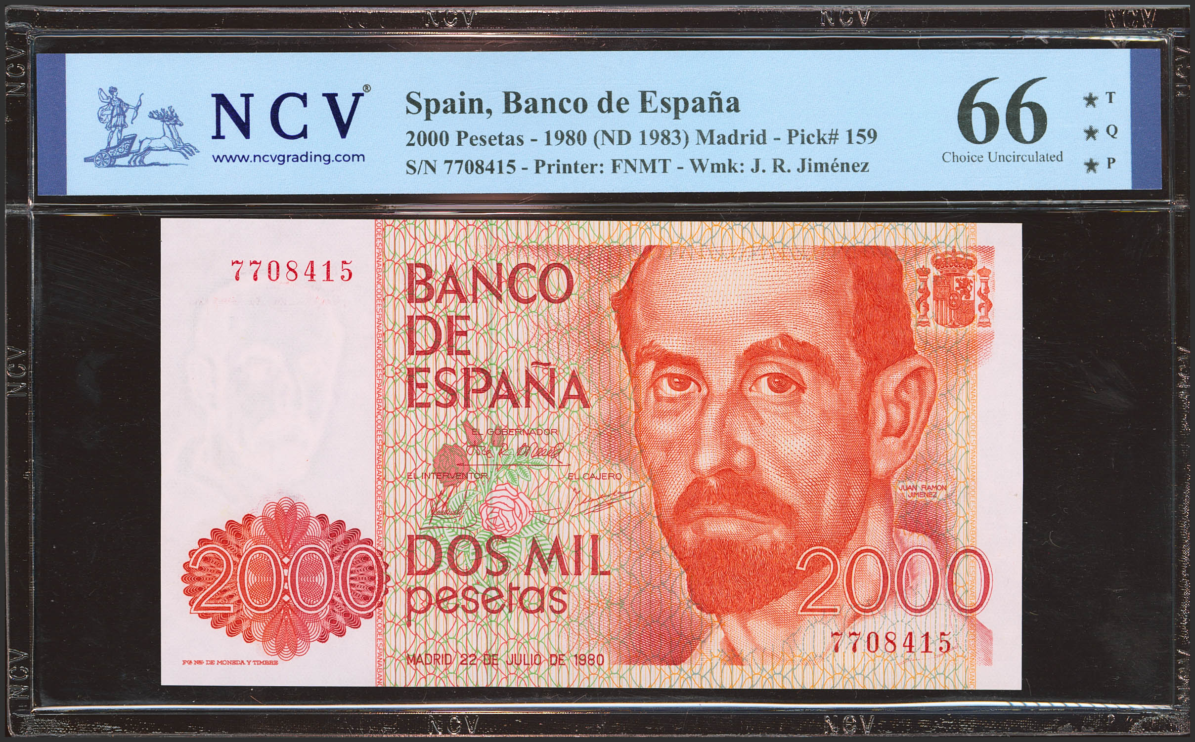 2000 Pesetas. July 22, 1980. No serial number. (Edifil 2023: 479, Pick: 159). Uncirculated. NCV66TQP package.
