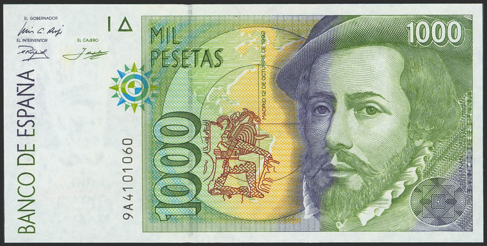 English 1000 Pesetas. October 12, 1992. Special Series 9A. (Edifil 2023: 483c). Uncirculated.